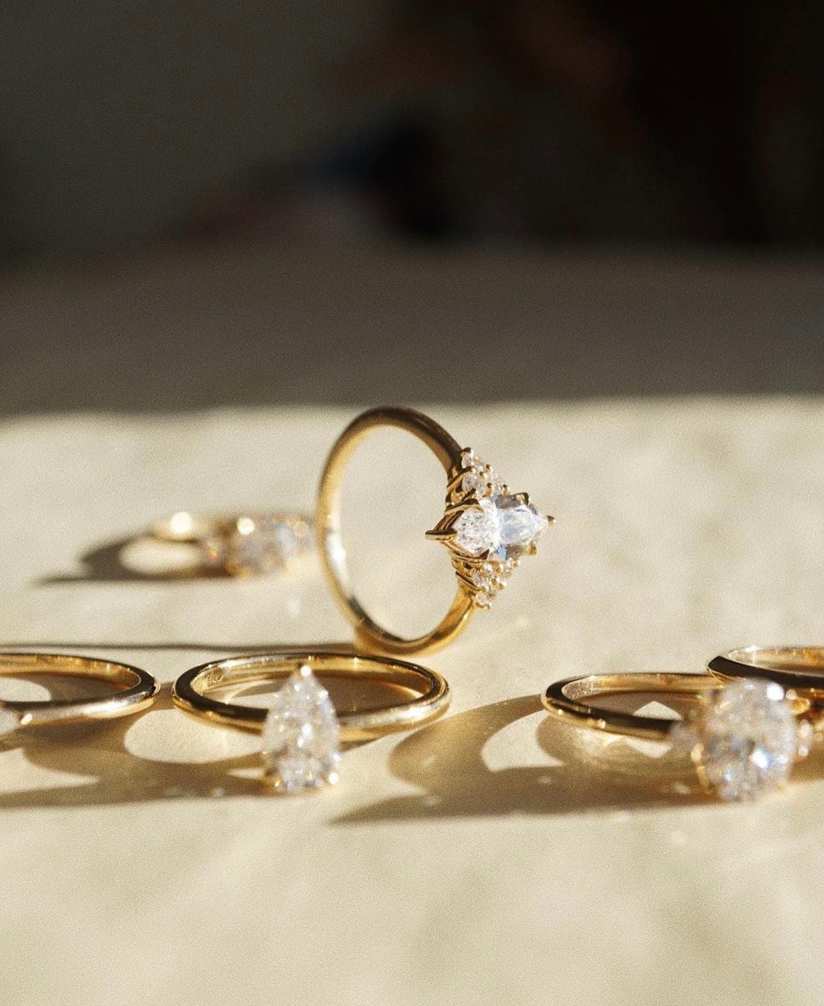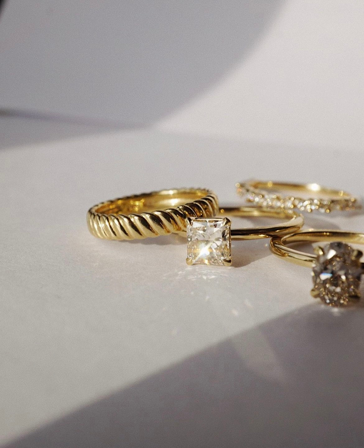 Pick a style that reflects you — from classic solitaires to unique designs — in your preferred gold color.