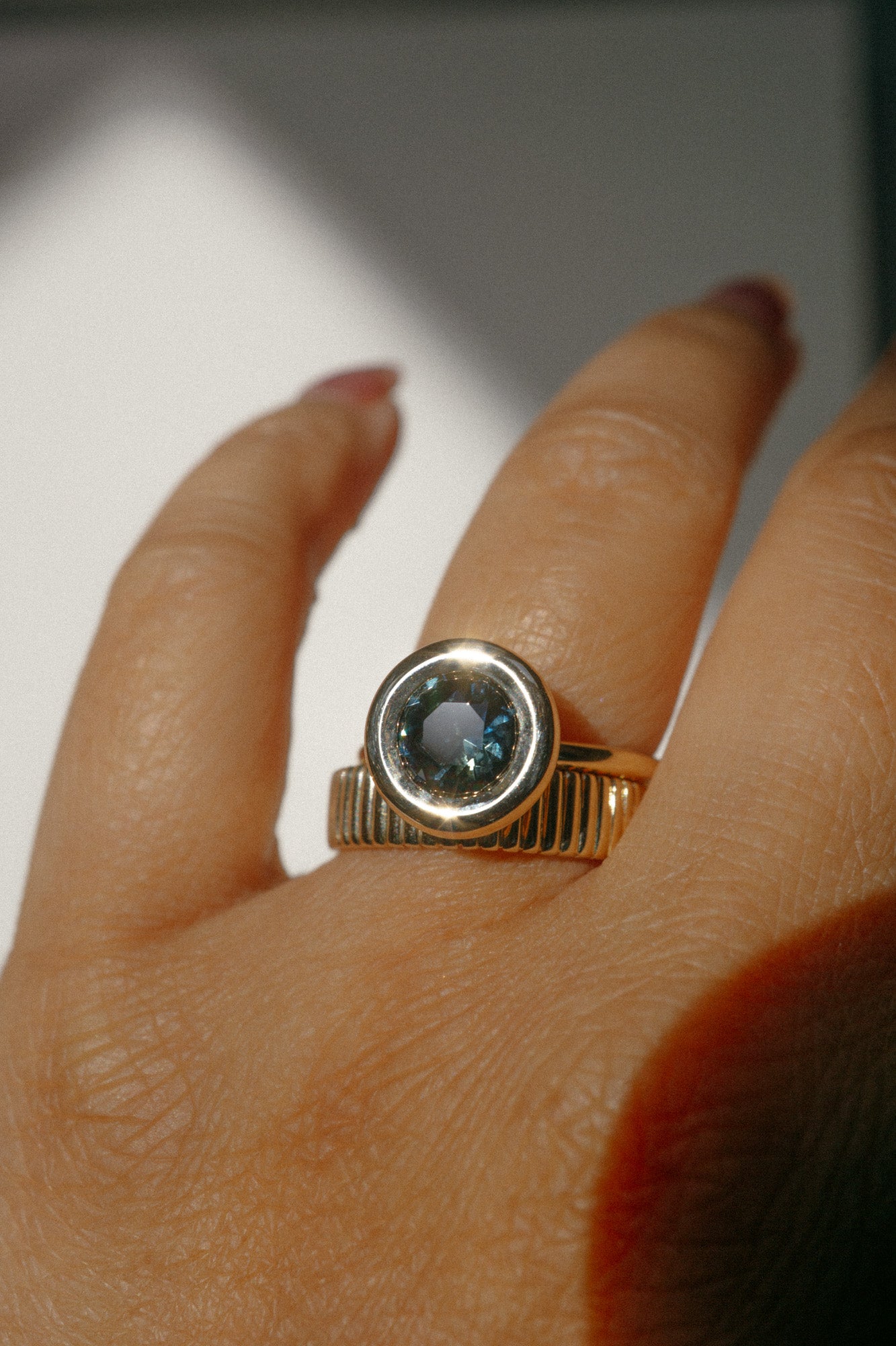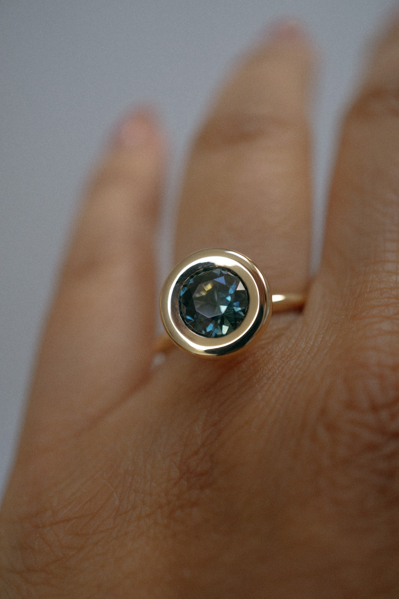 Pele Ring - 1.72ct Teal-Green Round Brilliant-cut Sapphire *ready-to-ship