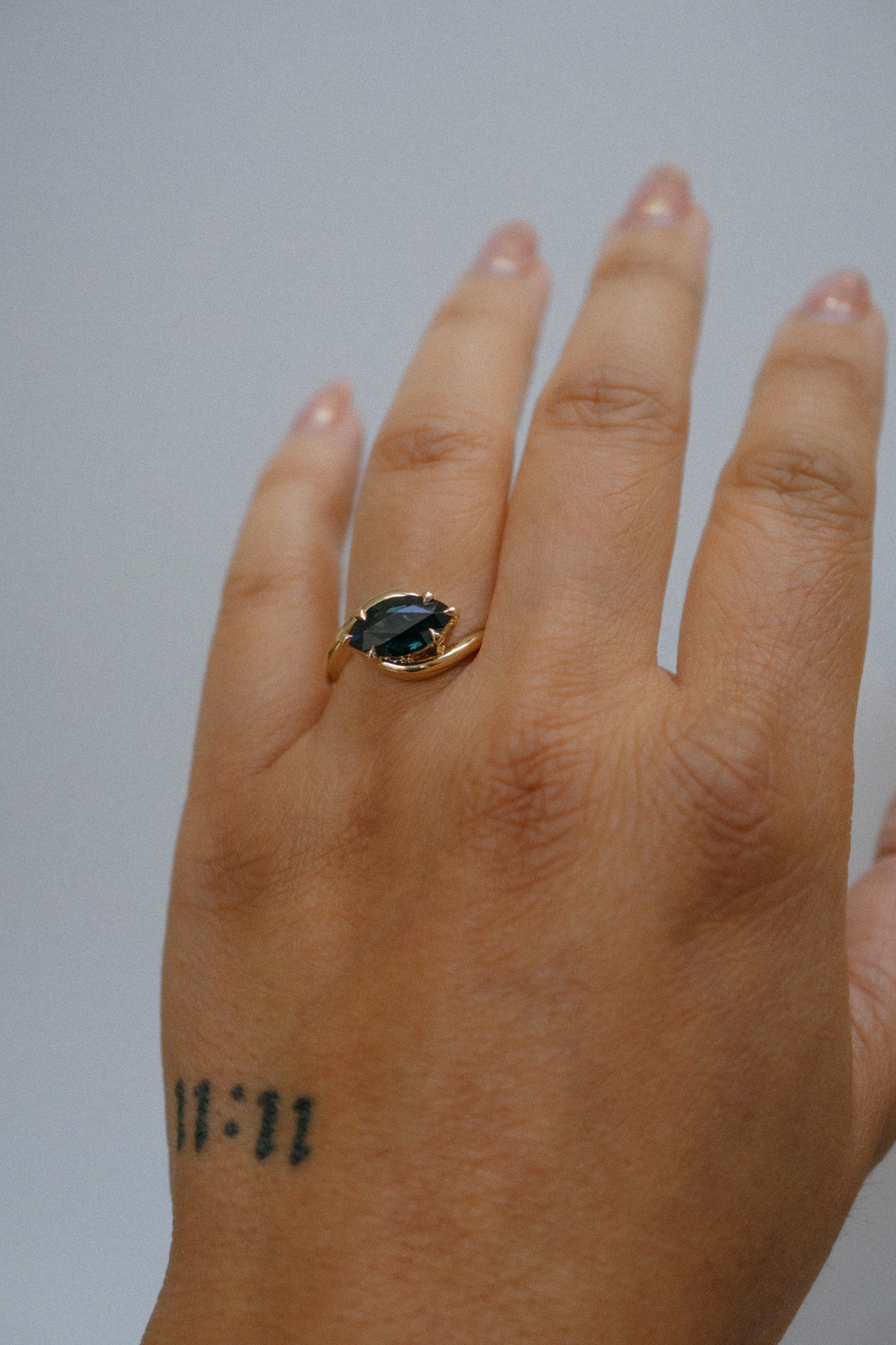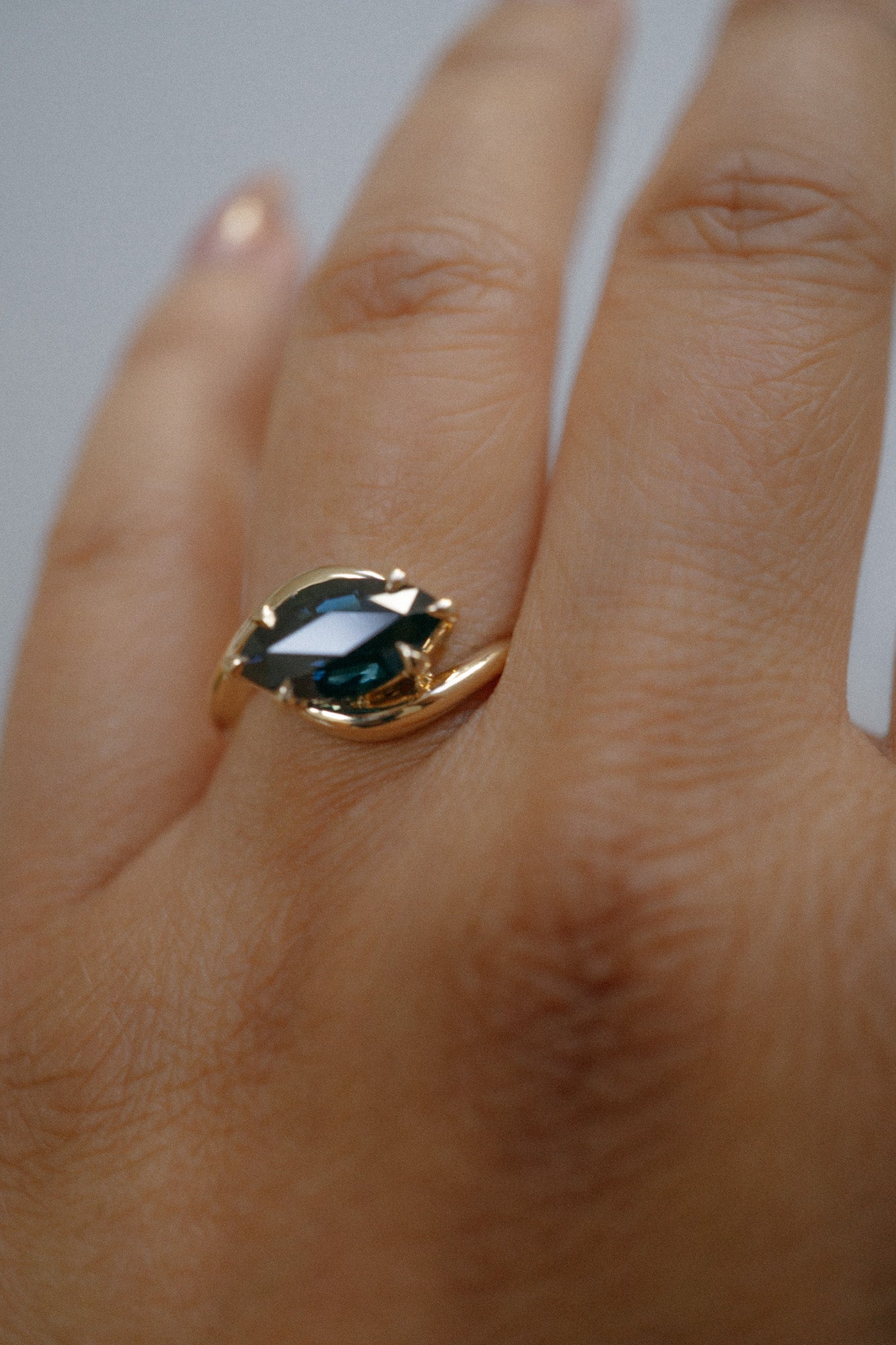 Goodness wrapped in love. The Nori ring highlights a one-of-a-kind natural stone of your choosing, embraced on either side by a bypass setting.