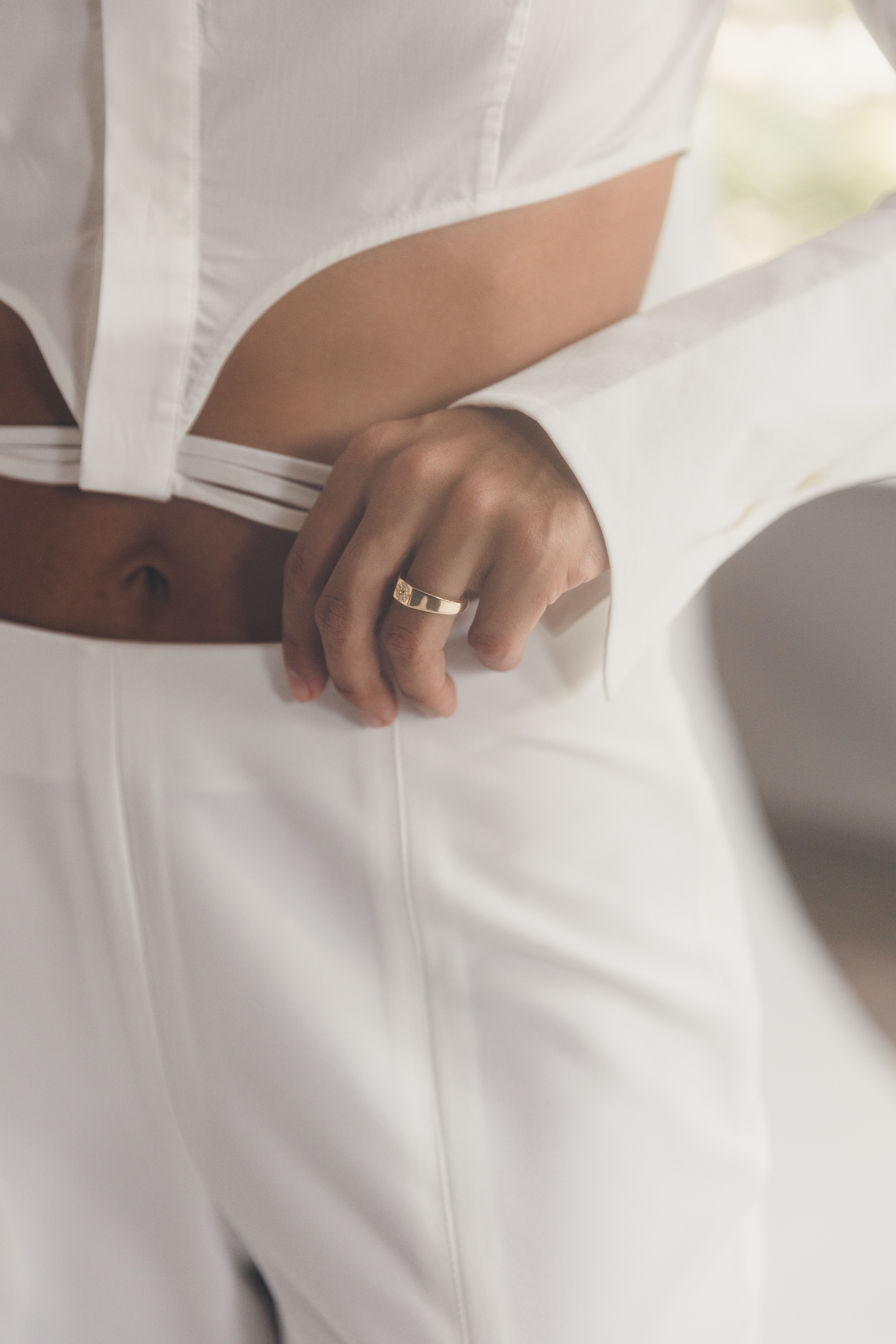 We love classic, but we love reinvented classic even more. We updated the iconic gold signet style with a daisy pattern of pastel colored gemstones. Personalize this style by choosing your favorite color combination. A style that can fit you or your partner.