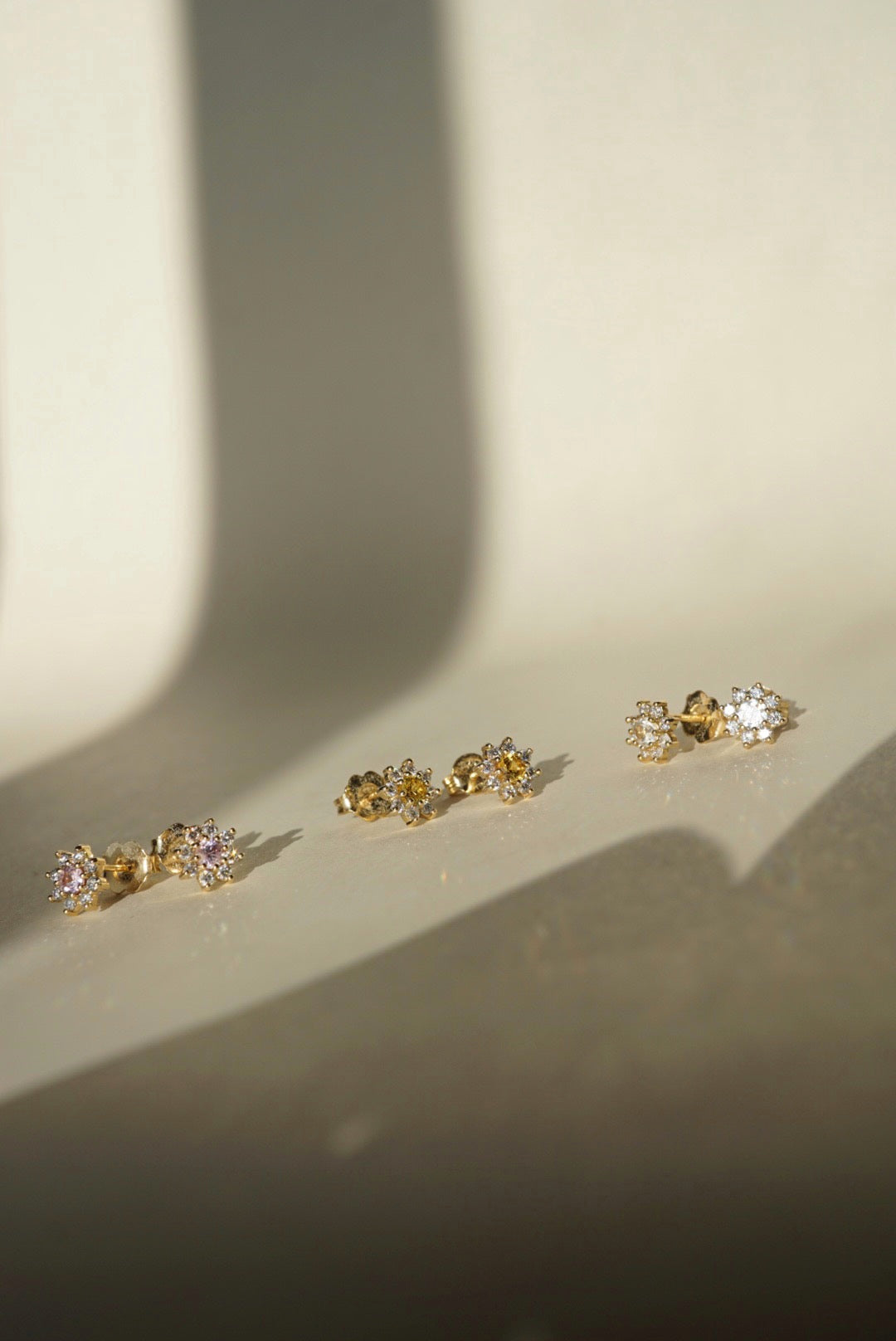 A daisy pattern of pastel colored gemstones. Personalize this style by choosing your favorite color combination. Sold as a matched pair.