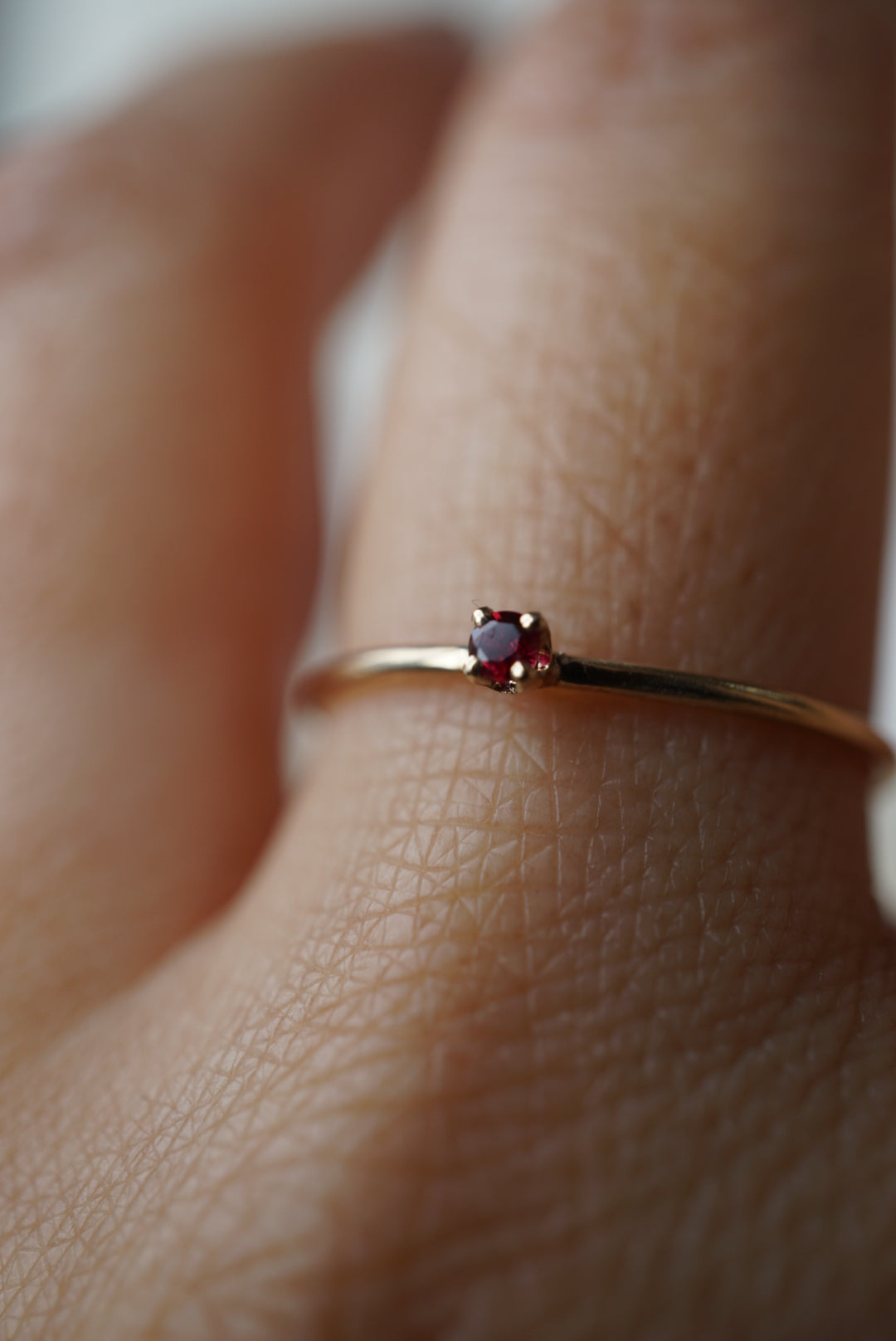 Modern, yet classic in style. The Birthstone Ring features a beautiful round brilliant cut gemstone. Securely prong-set, the Birthstone Ring stands strong enough as a statement of its own or makes for an effortless stacking pair or delicate engagement ring.