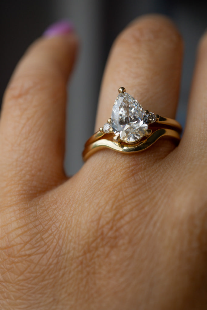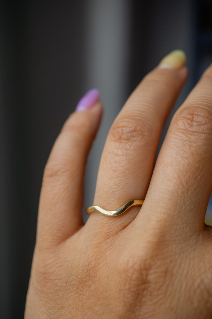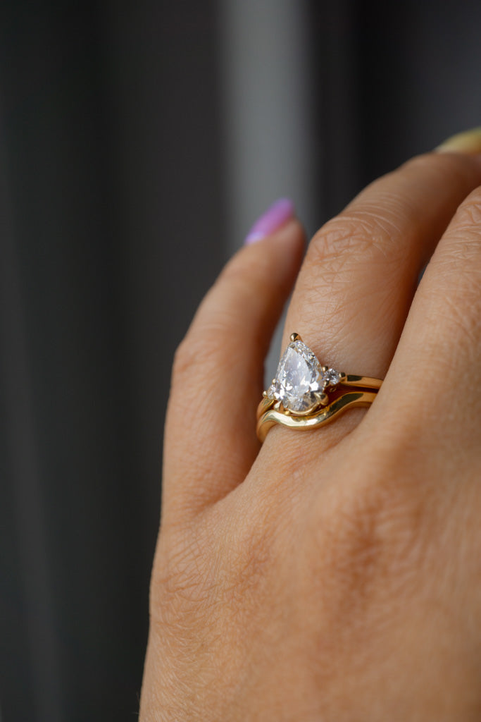 An intuitive connection to nature. The Crescent band shines with its beautiful moon inspired shape. The gentle curve helps hug lower setting rings with small to medium sized centre stones.