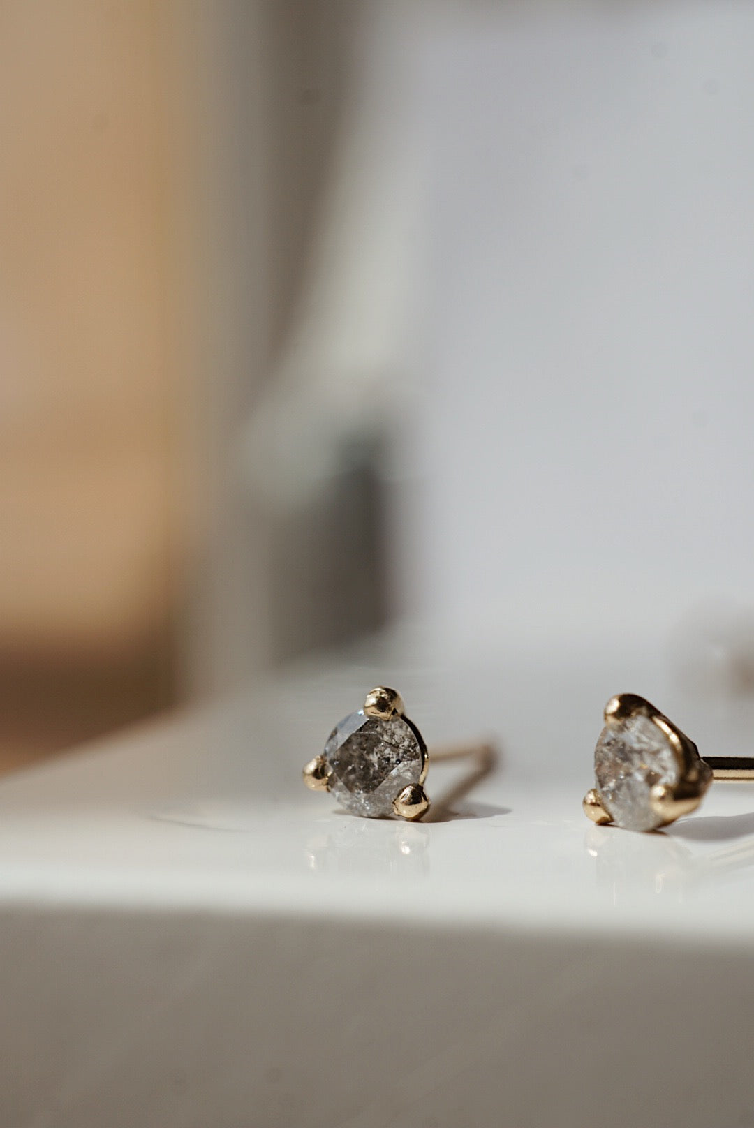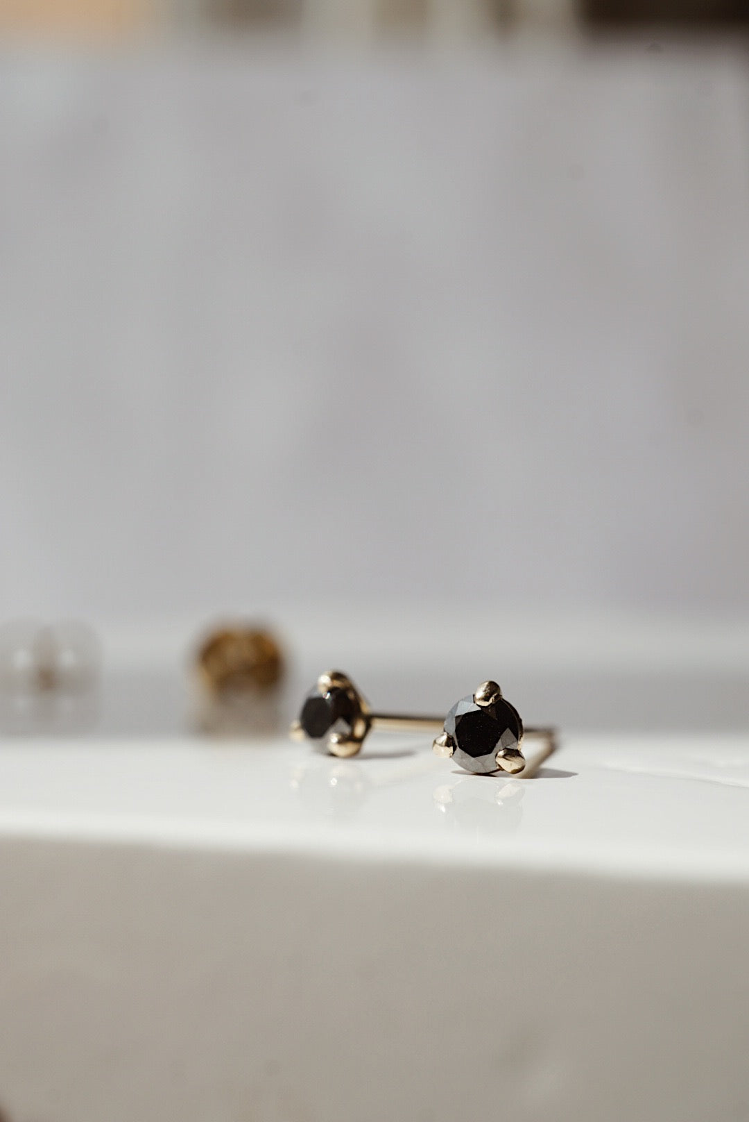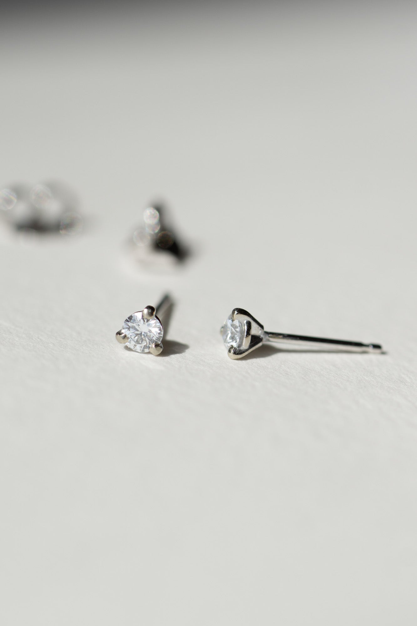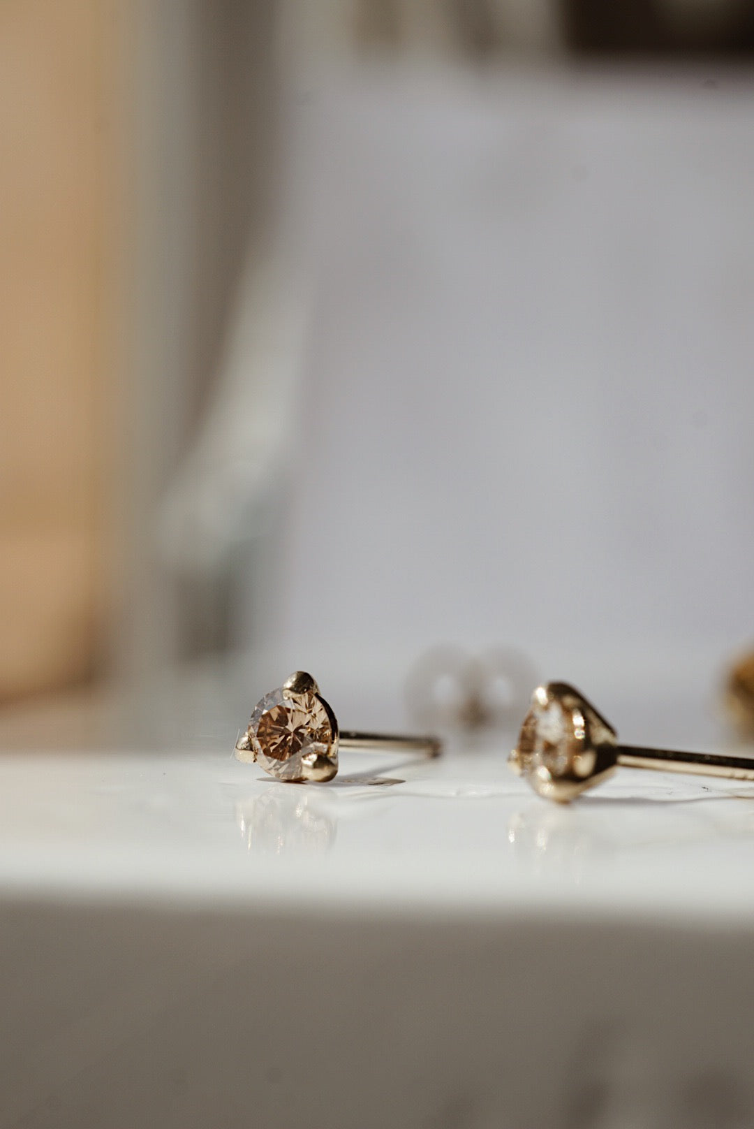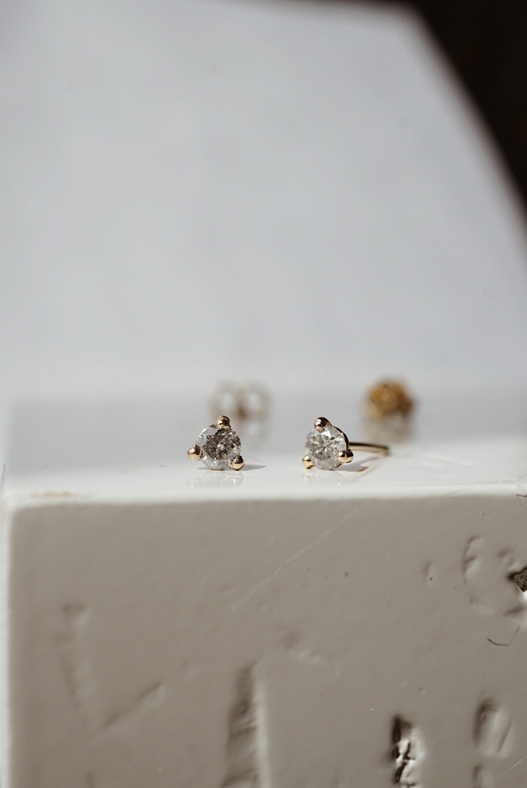 3mm round brilliant diamonds that are offered in lab-grown white, natural champagne, natural salt & pepper, or colour-enhanced natural black. Set them in a pair of stud earrings.