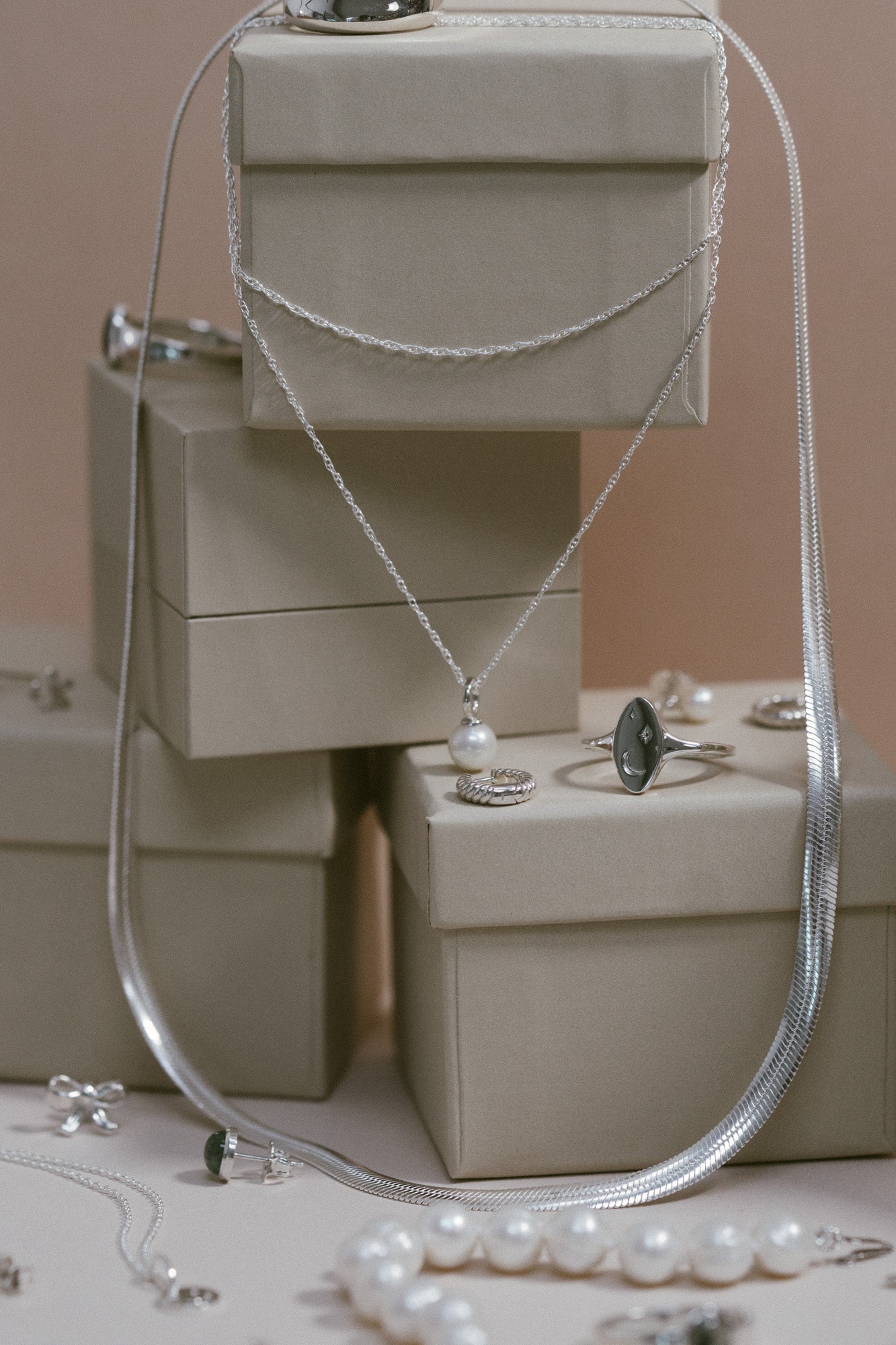 A natural freshwater pearl pendant strung on a delicate silver rope chain. It’s our favorite pop of personality. Layer it with your other necklaces, or let it shine on its own!
