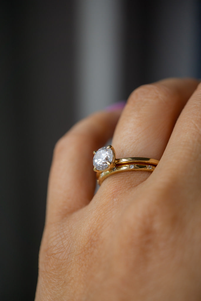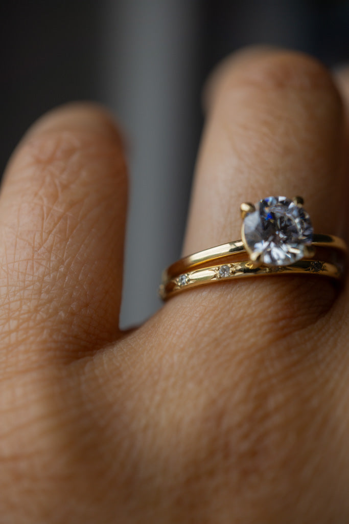 You can also use a polishing cloth for extra shine and to remove any tarnish. Sometimes 14K gold can tarnish a bit—particularly earrings or the inside of rings—depending on your skin chemistry, but it is a very easy fix.