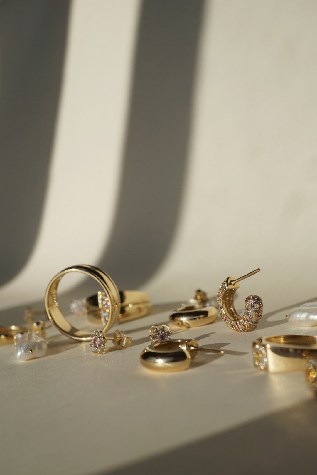 You can also use a polishing cloth for extra shine and to remove any tarnish. Sometimes 14K gold can tarnish a bit—particularly earrings or the inside of rings—depending on your skin chemistry, but it is a very easy fix.