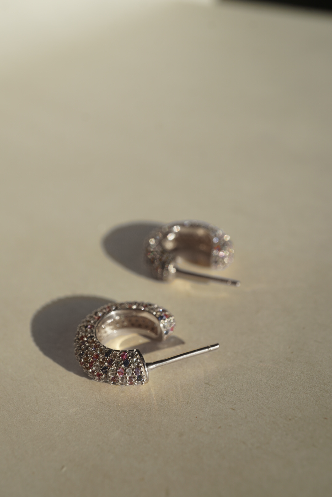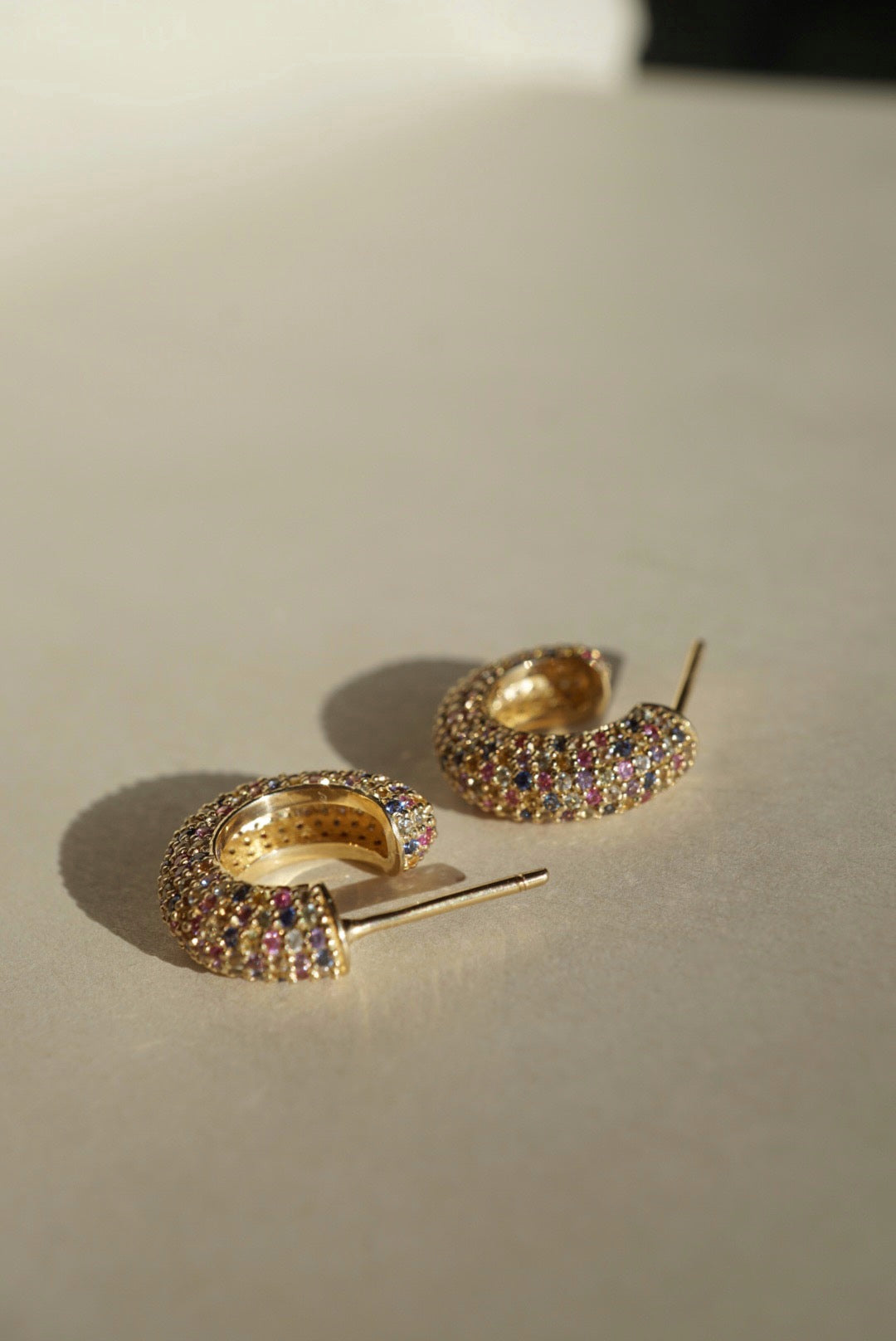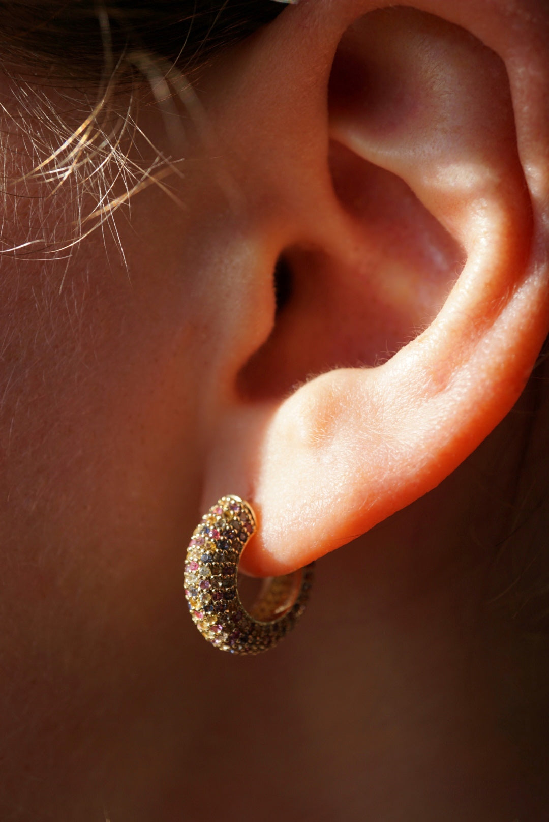 Macaroni Hoop Earrings with Sapphires *made-to-order