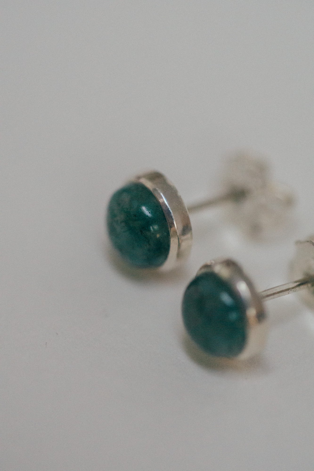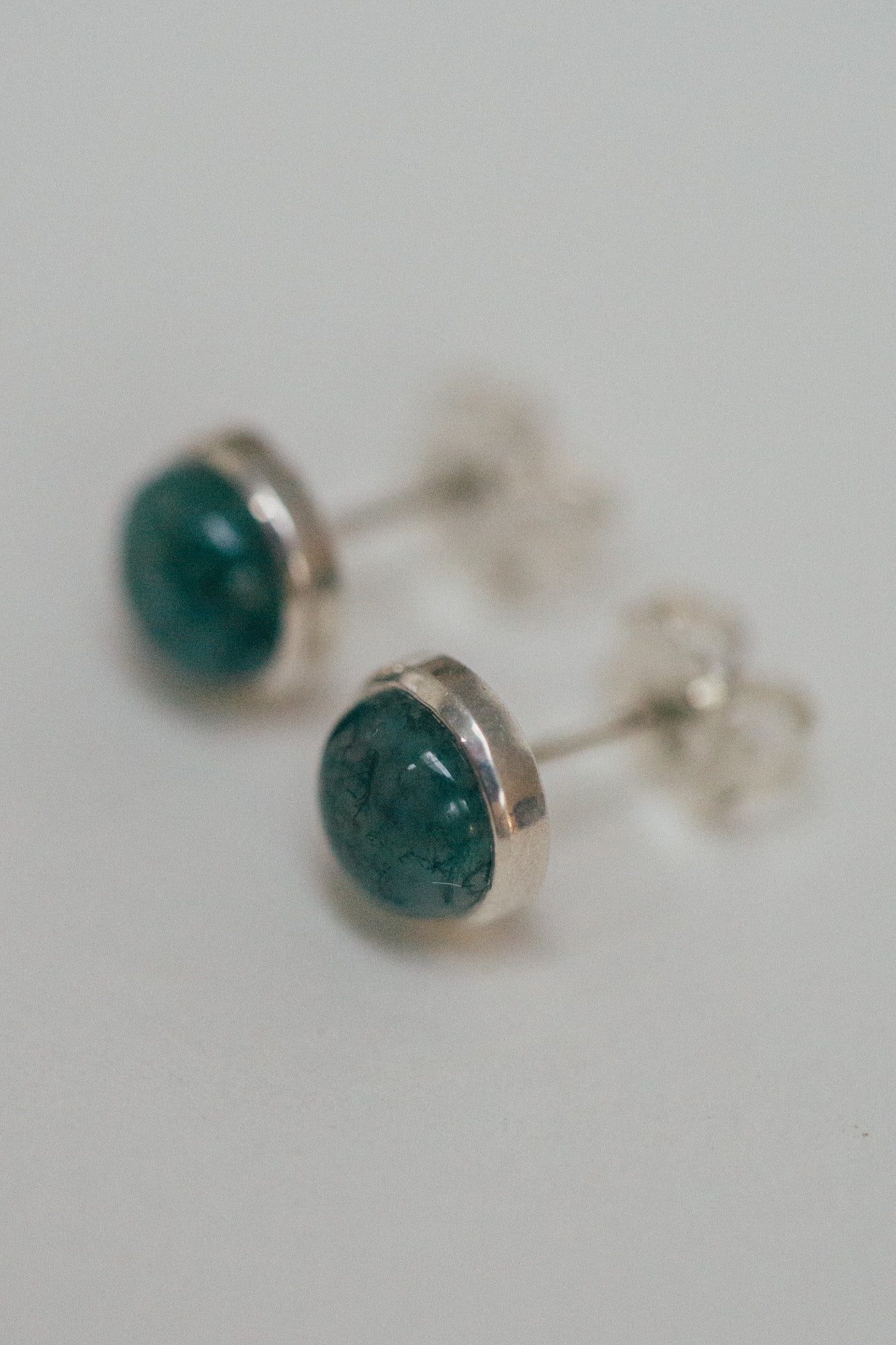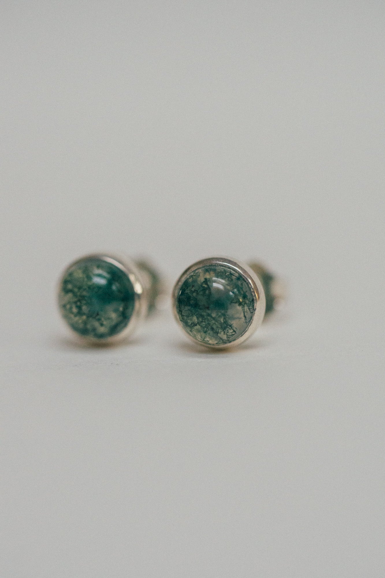 Earthly gemstones for your ears. Each moss agate stone will have different natural inclusions, as each one is unique and one-of-a-kind.