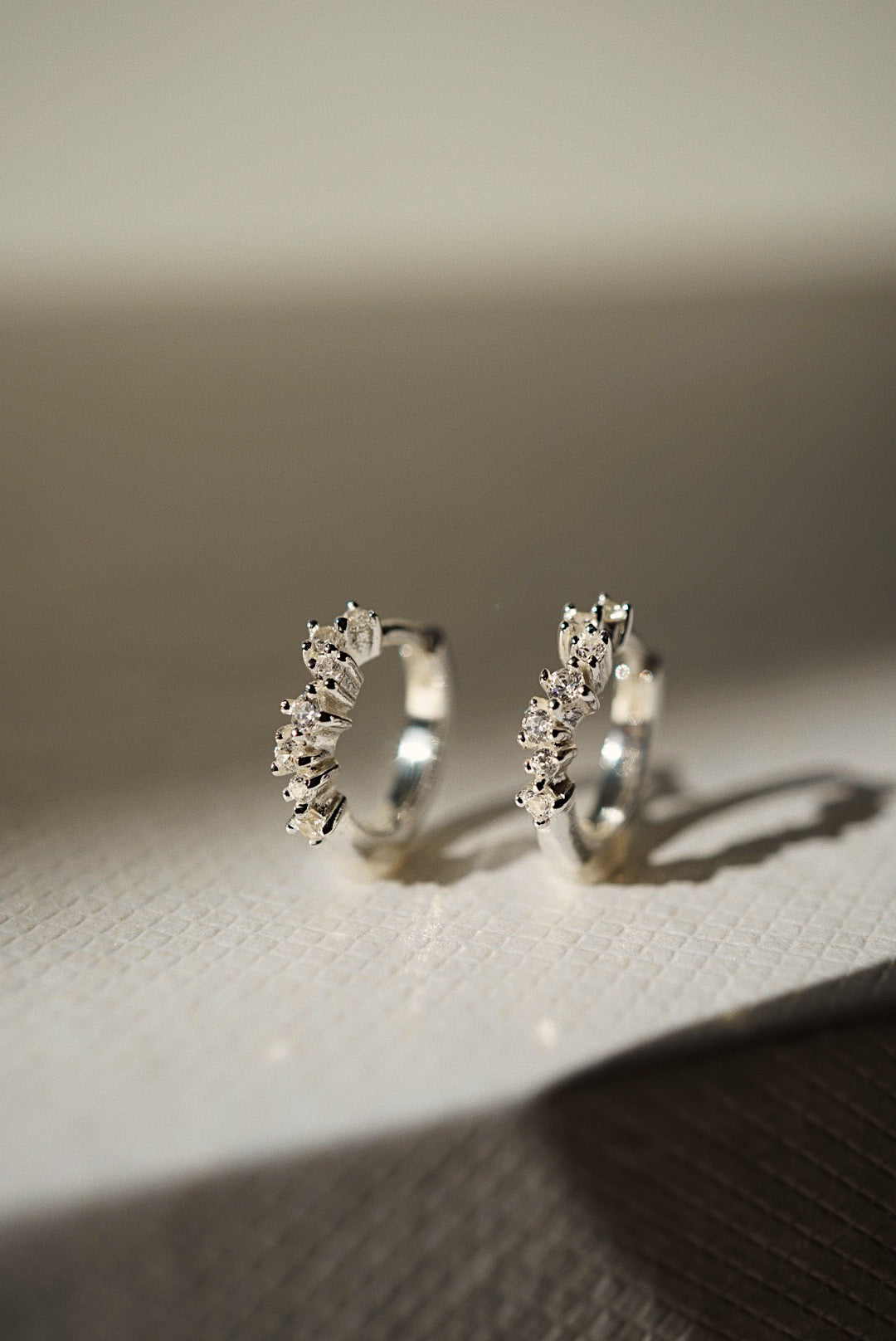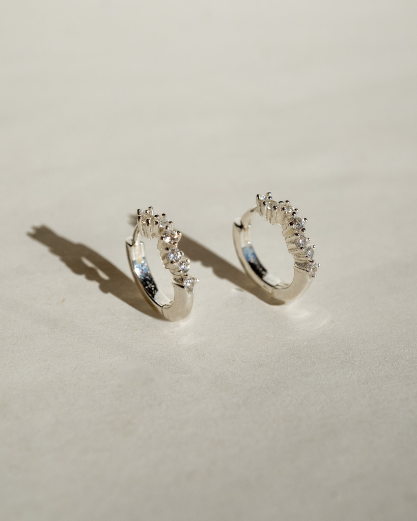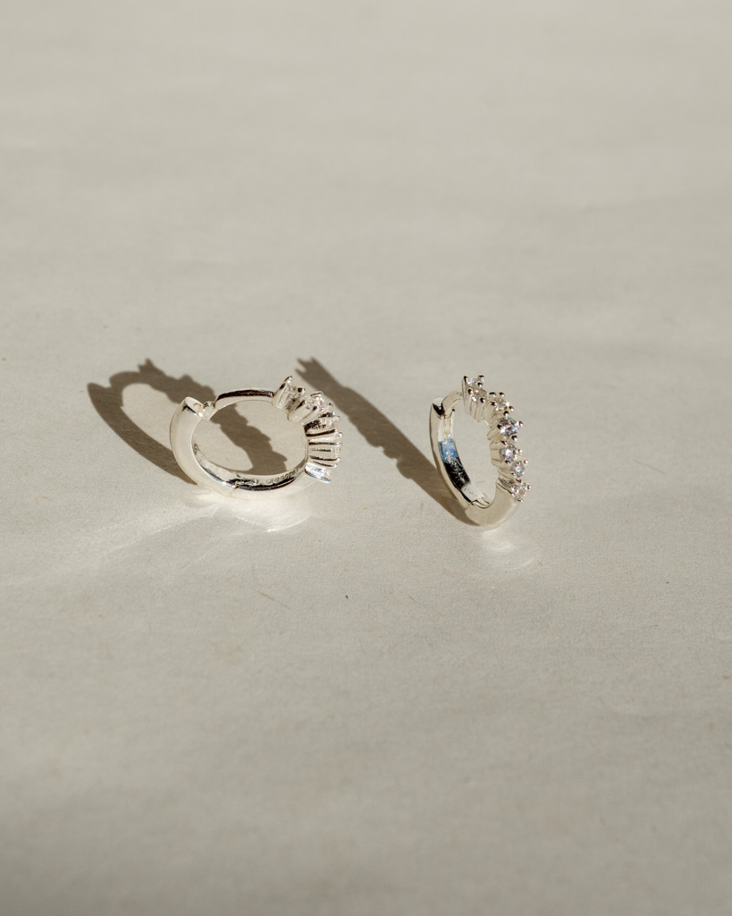 Like shimmering stars in the night sky. The Evelyn Hoops highlight tiny white sapphires that follow the curve of your little lobes.