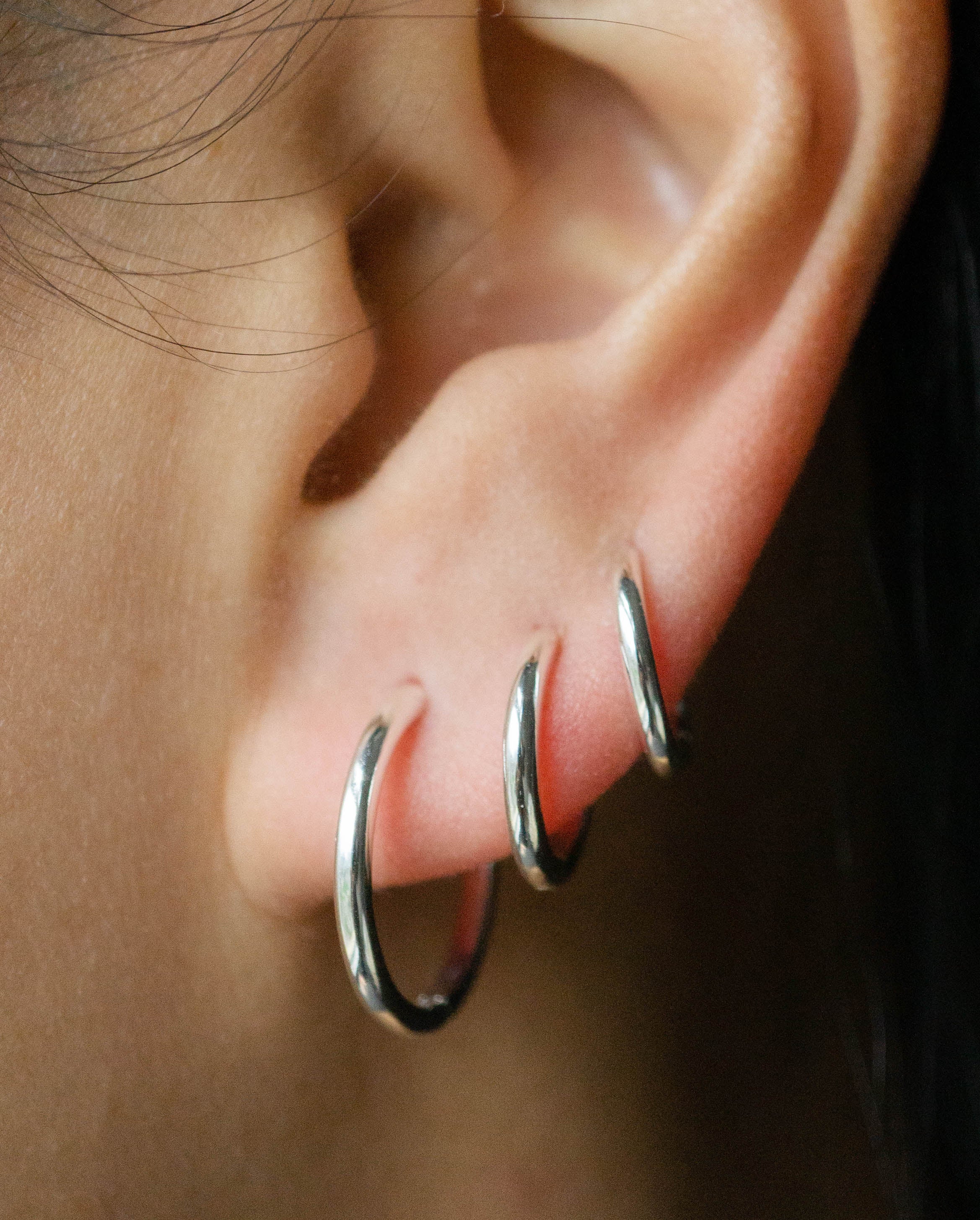 The perfect lightweight hoops for all day, every day. Classic hoops that hinge open so they're always easy to put on.