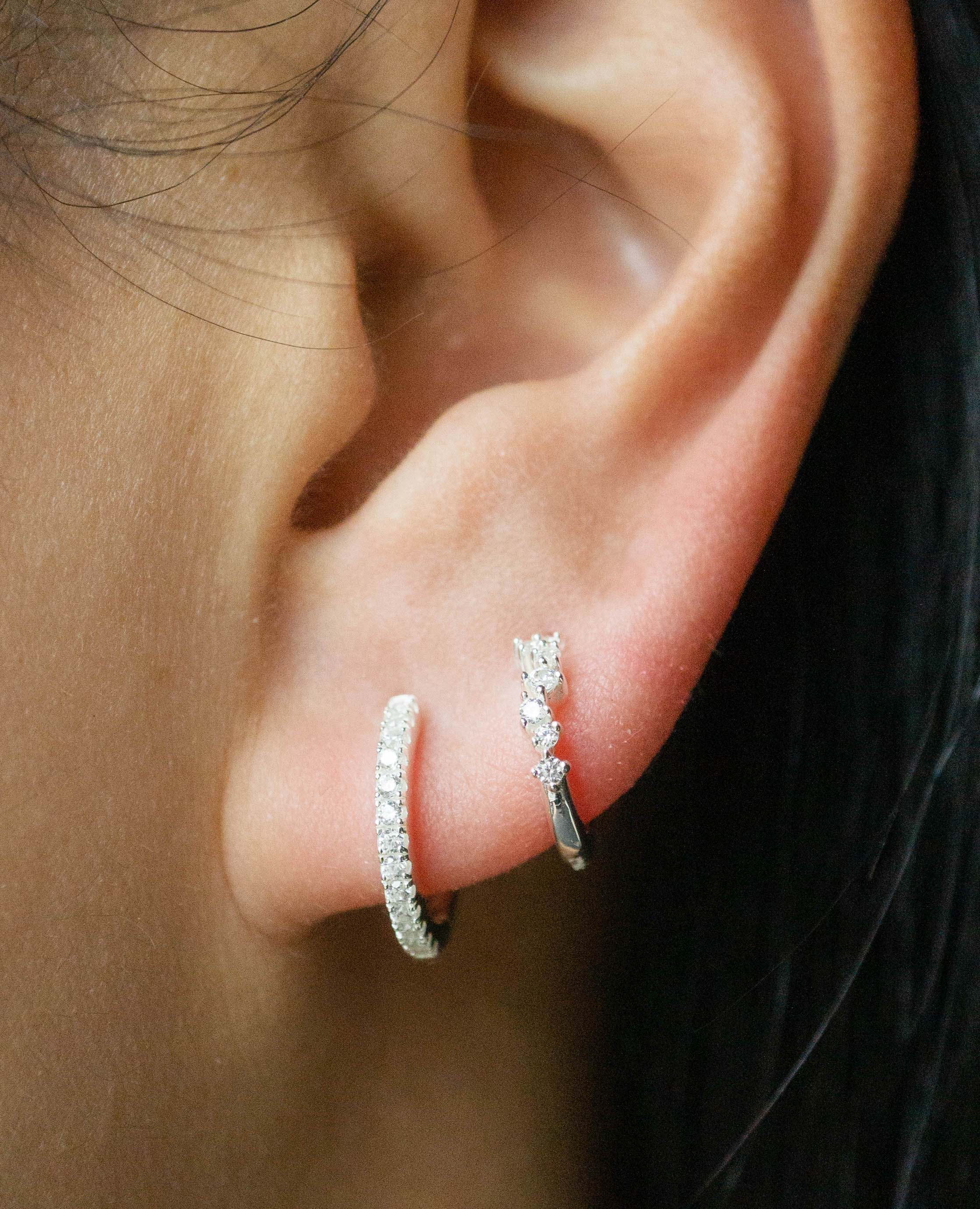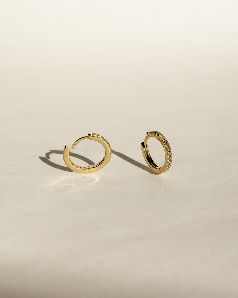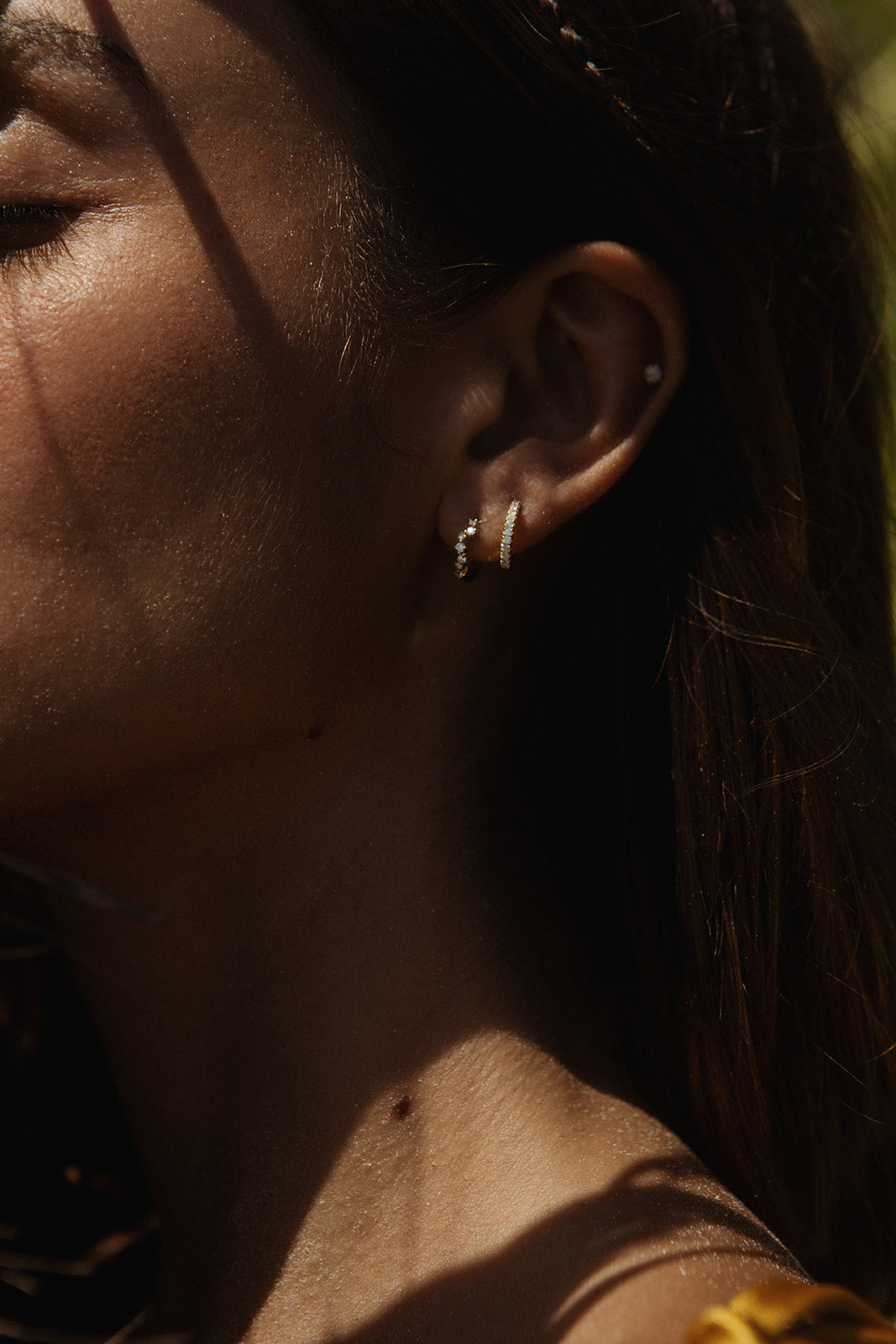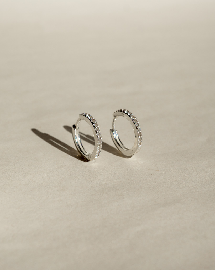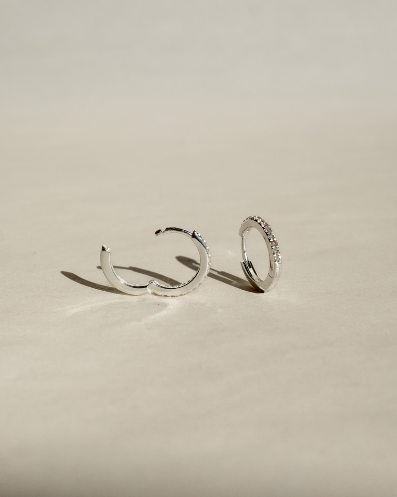 The Leilah Hoops are a timeless accessory set with brilliant white sapphires. Each pair is made to order, providing you with the perfect accessory for any occasion.