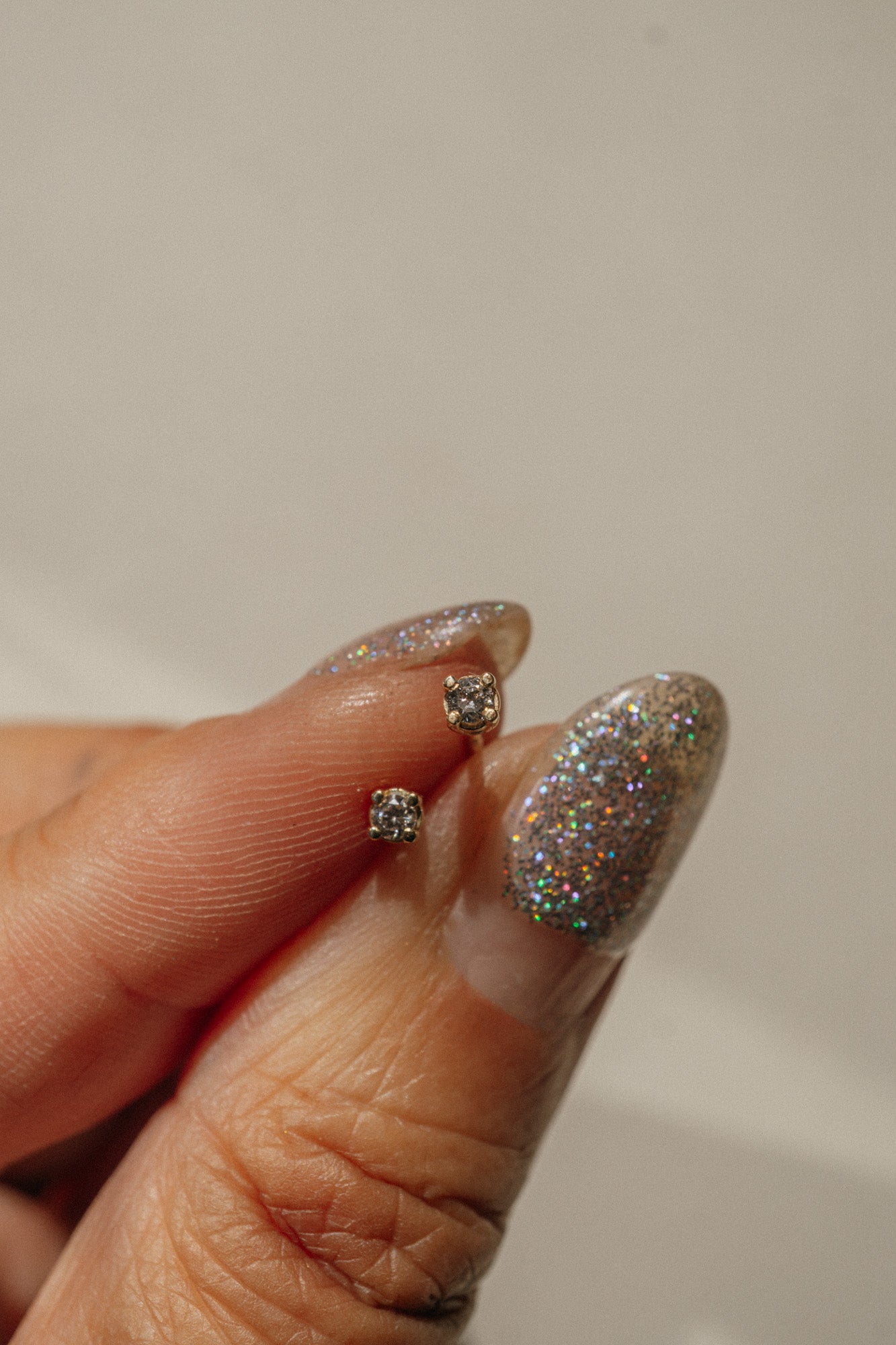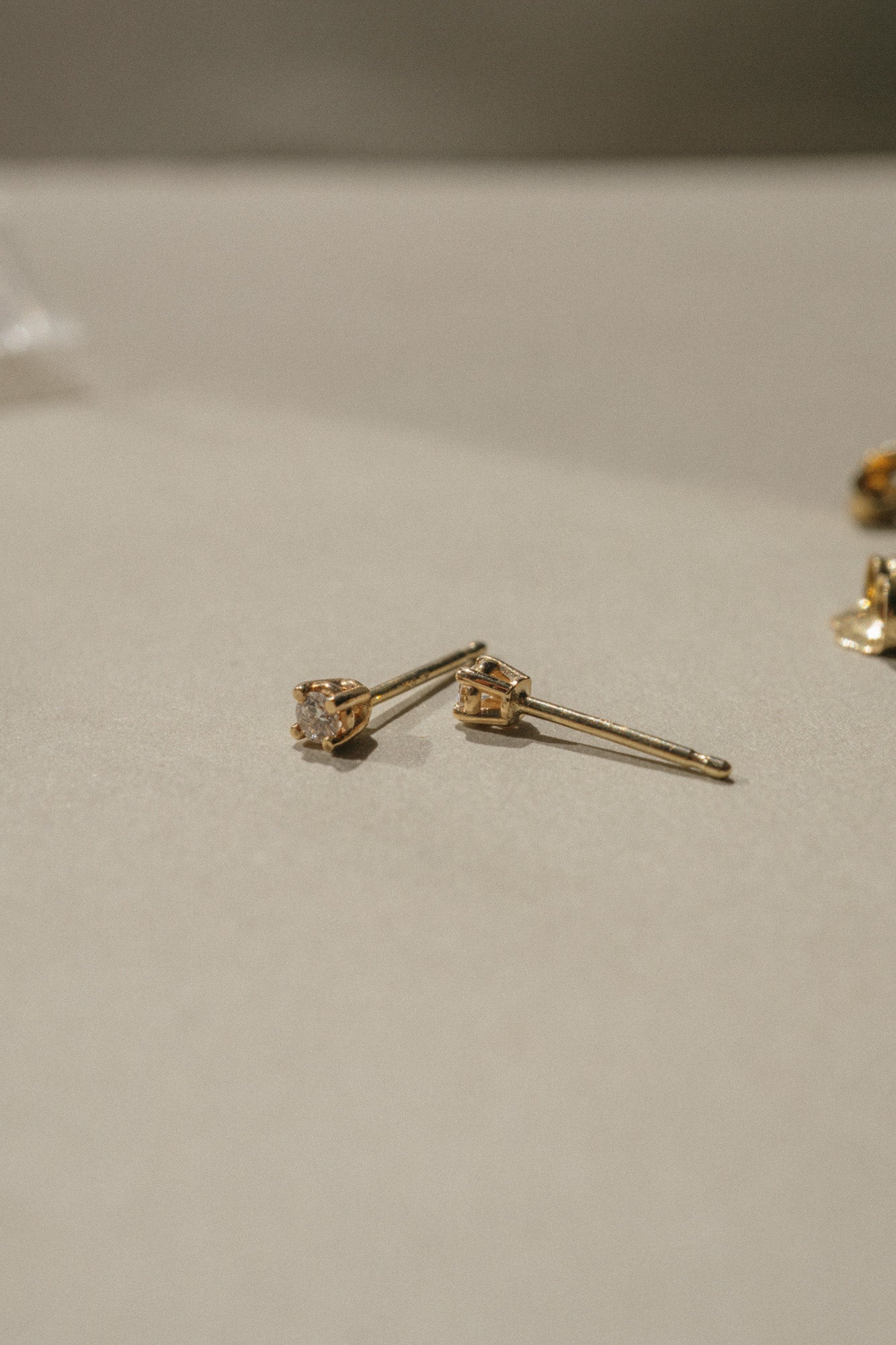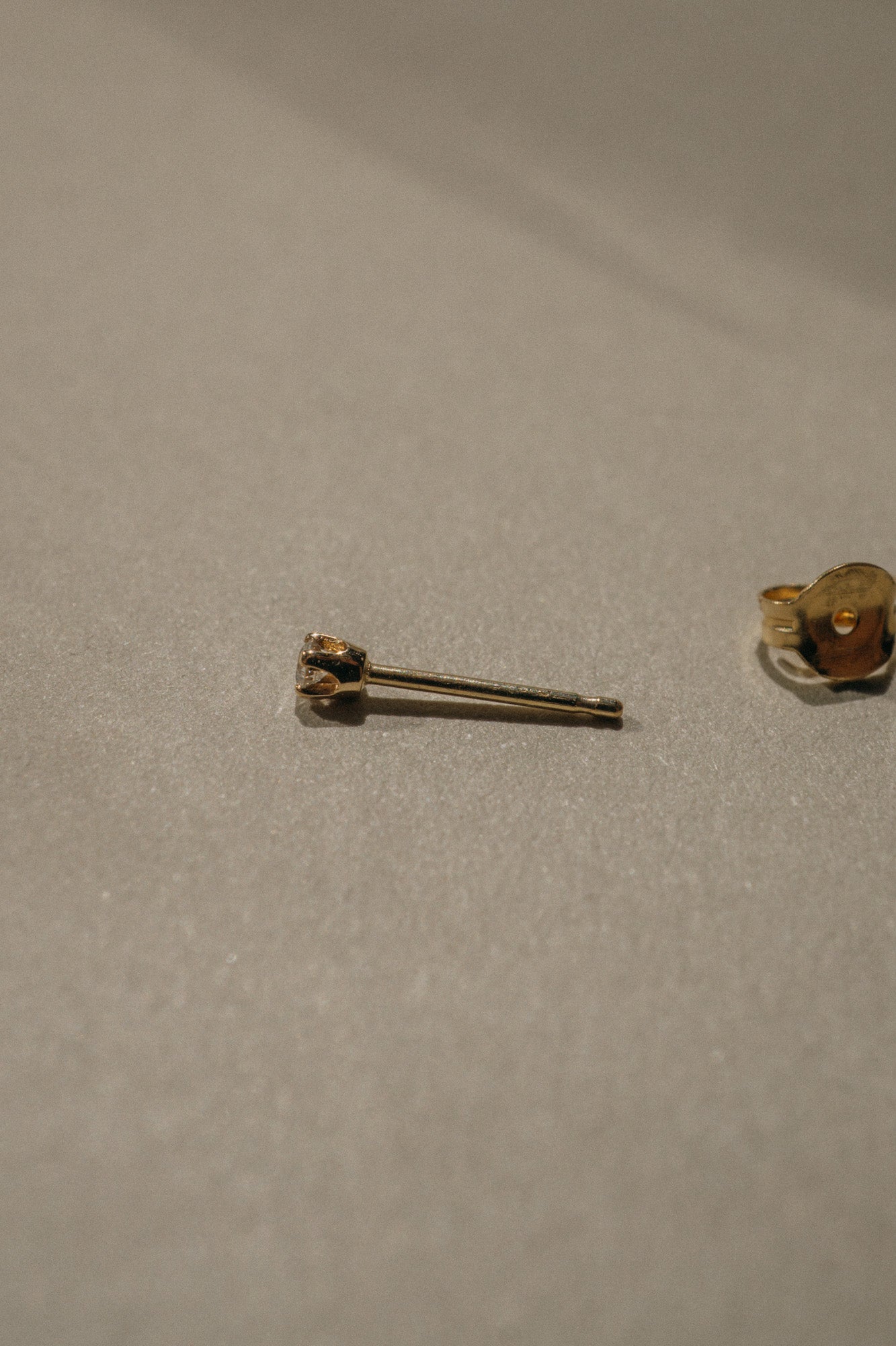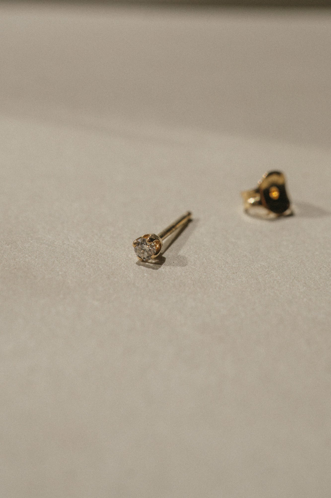 14k Yellow Gold White Diamond Mini Stud Earring / Single *ready-to-ship