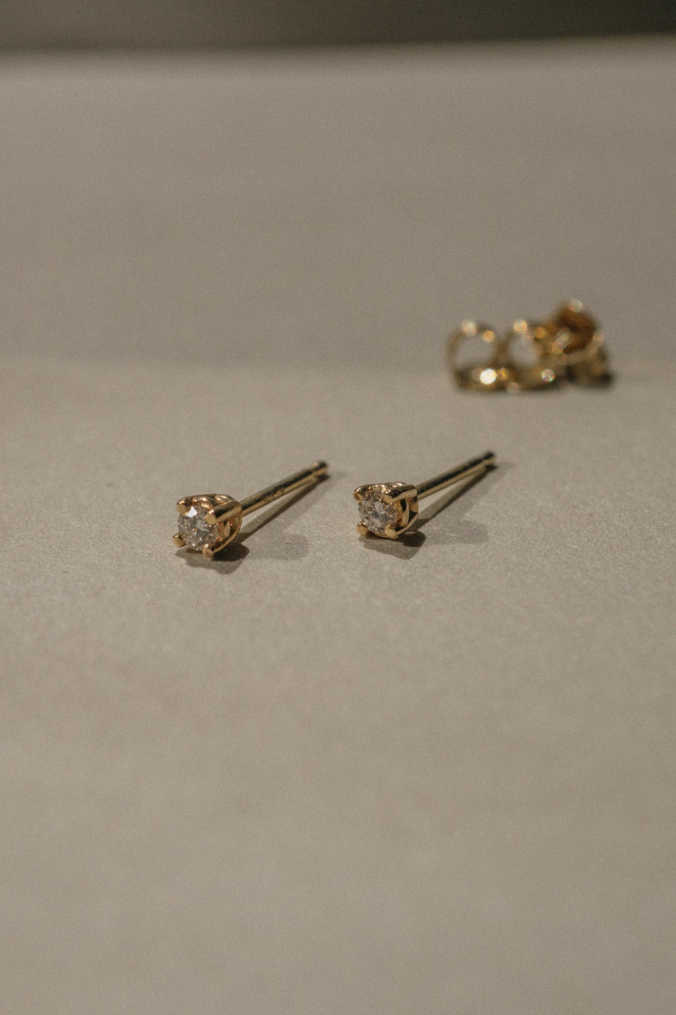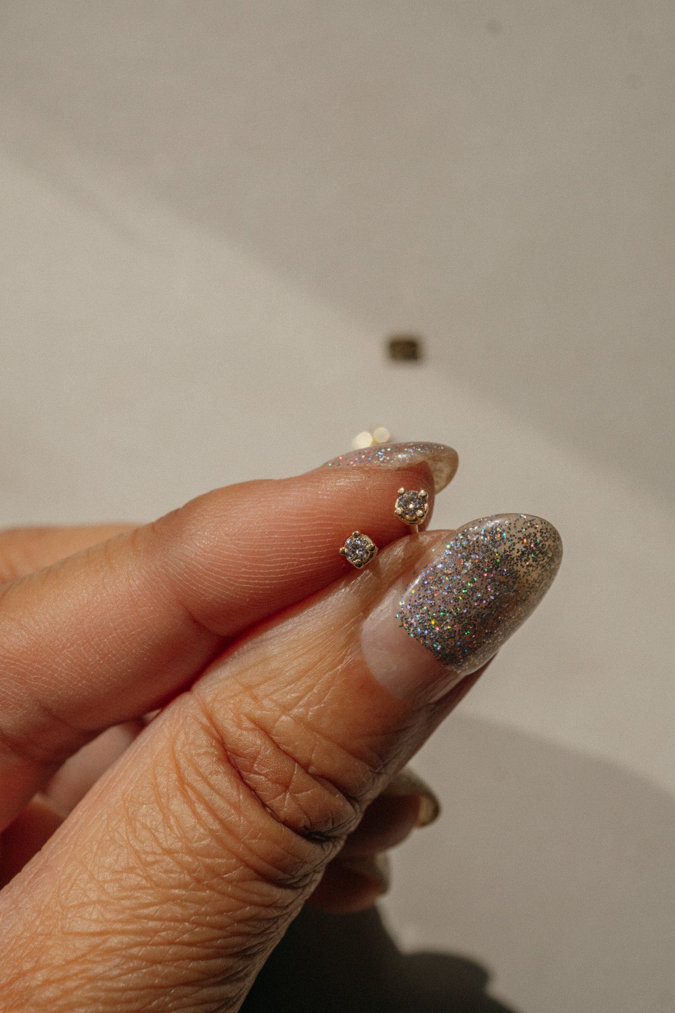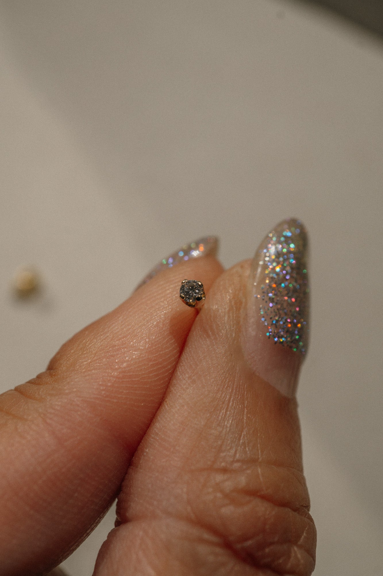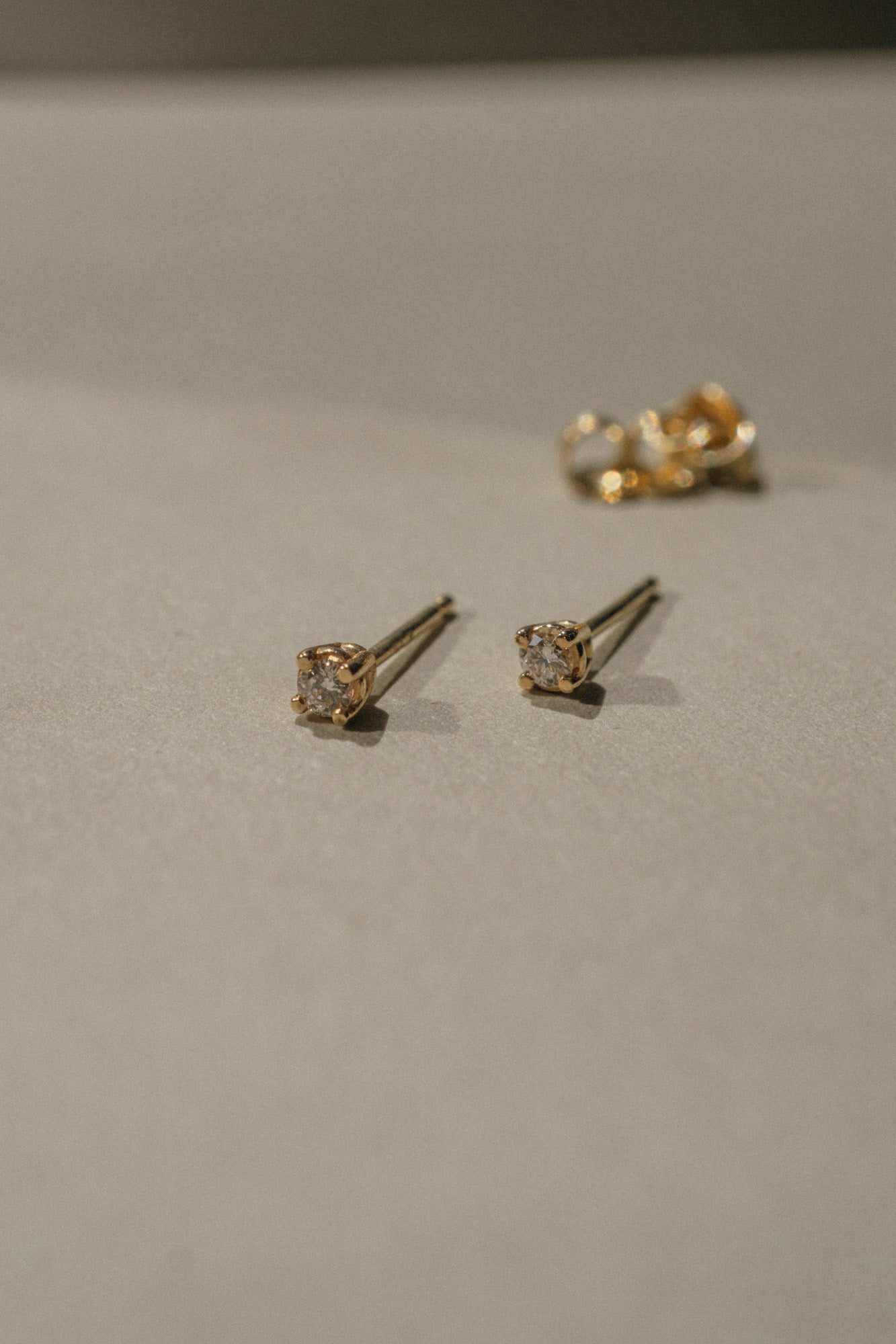 14k Yellow Gold White Diamond Mini Stud Earring / Single *ready-to-ship