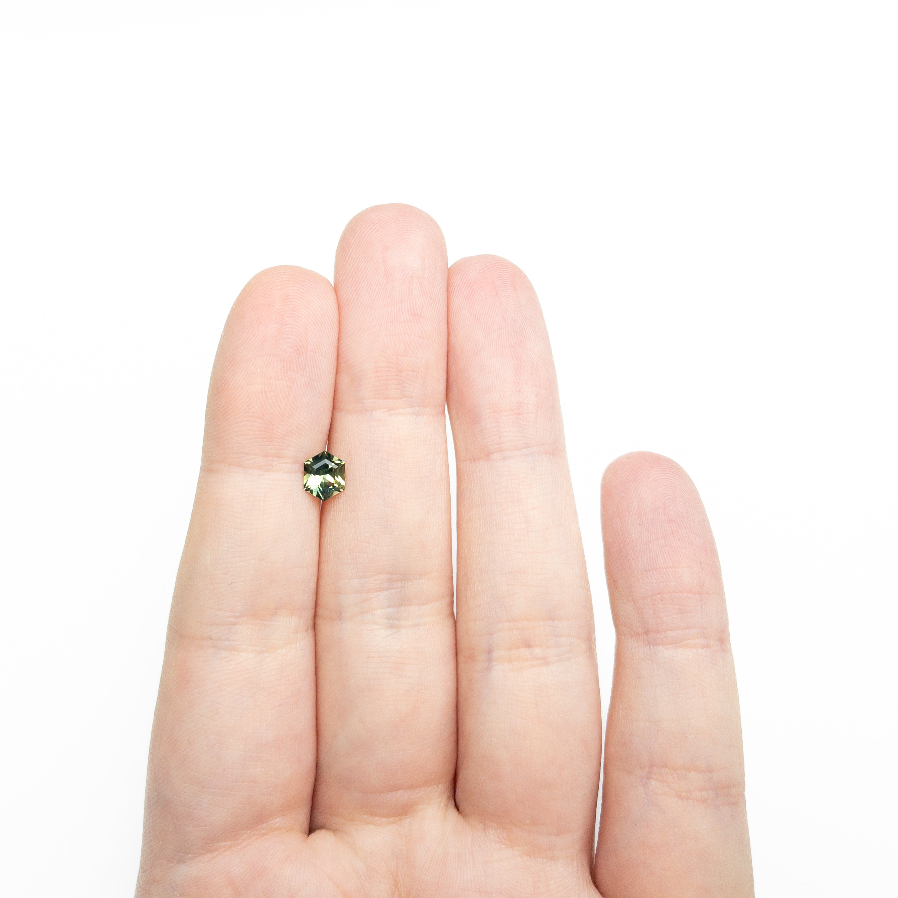 • 0.72ct / 6.26x5.07x3.10mm (ethically sourced green step cut hexagon sapphire)