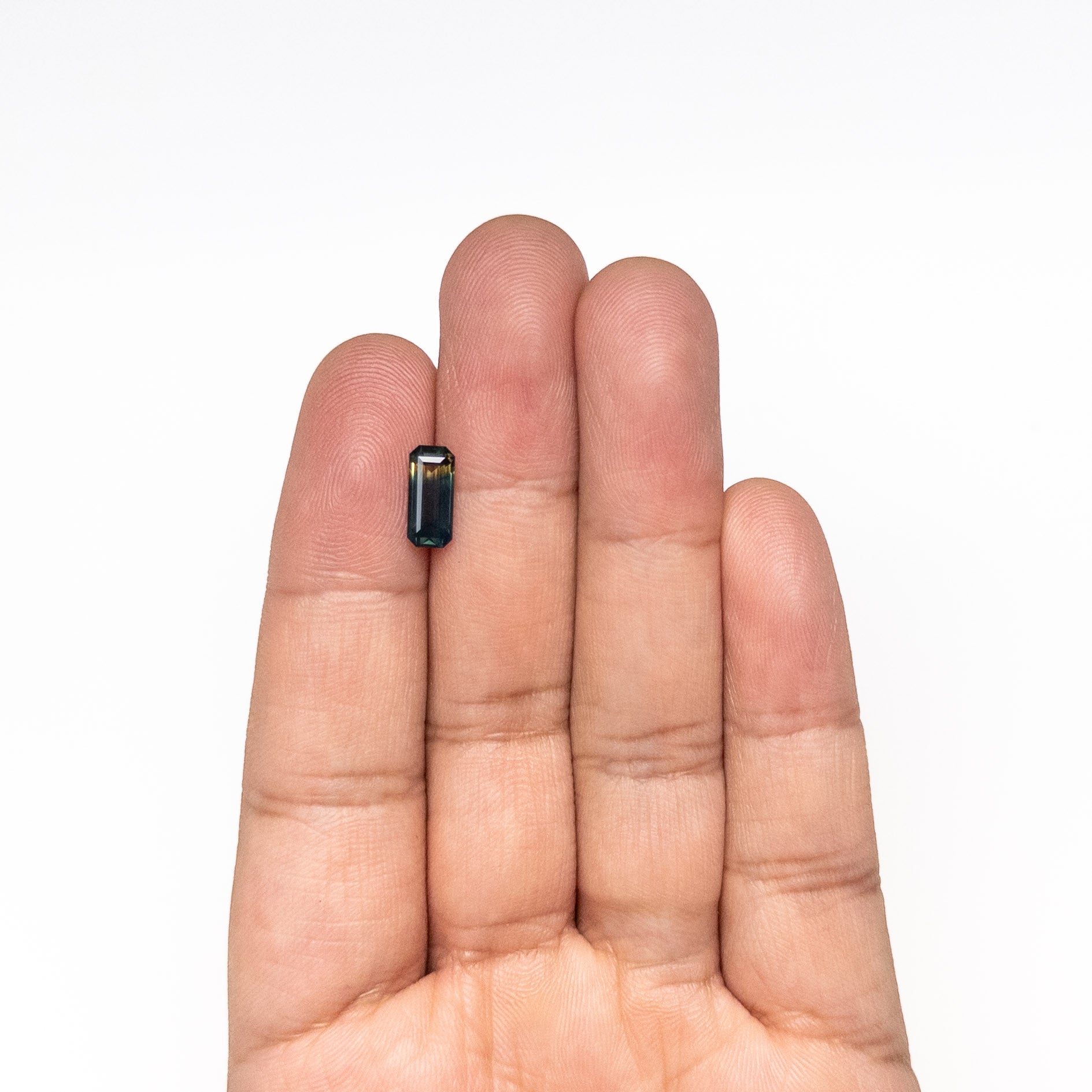 • 1.73ct / 10.23x4.60x3.23mm (ethically sourced parti blue-yellow step cut, cut-corner rectangle sapphire)