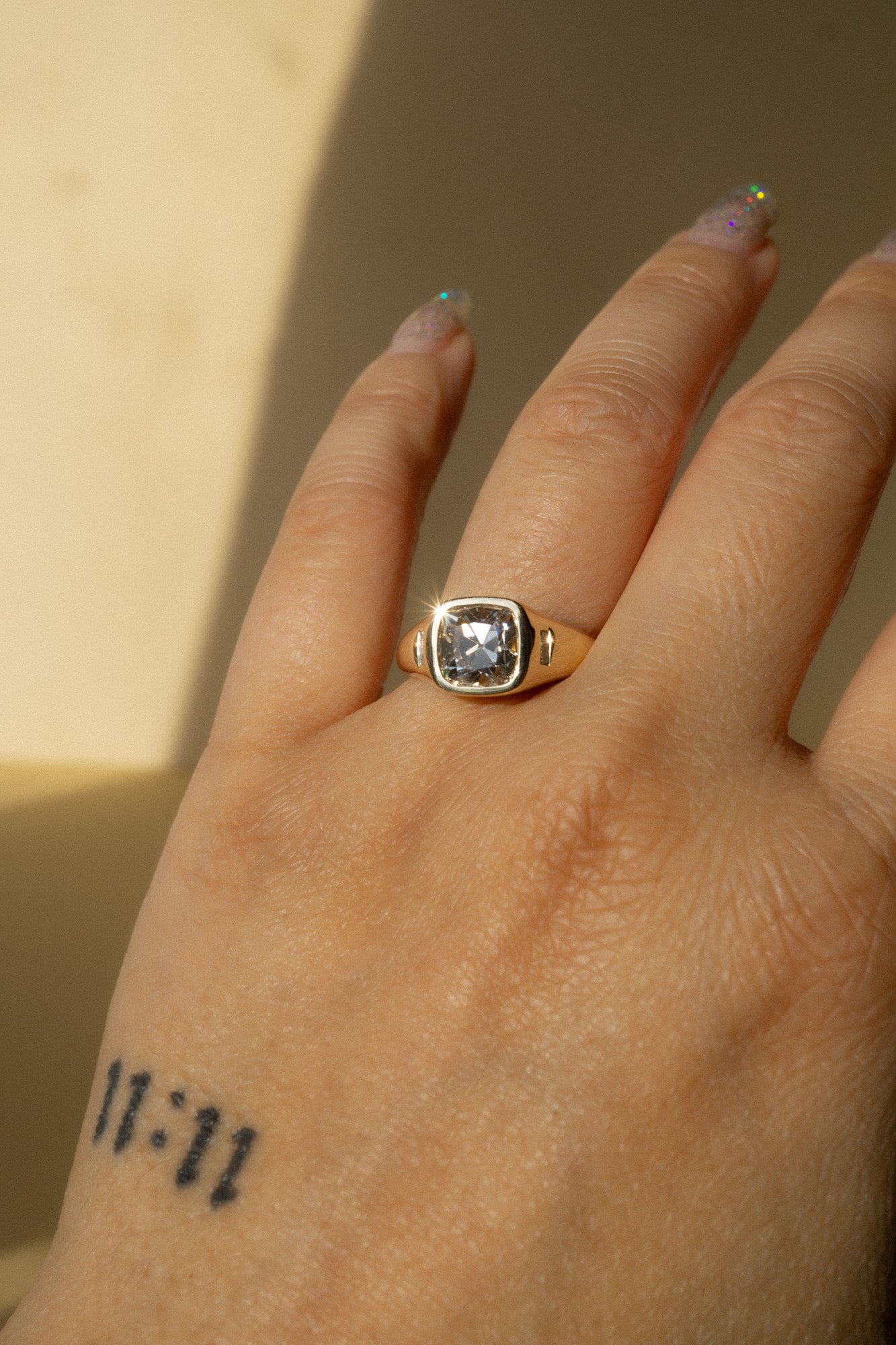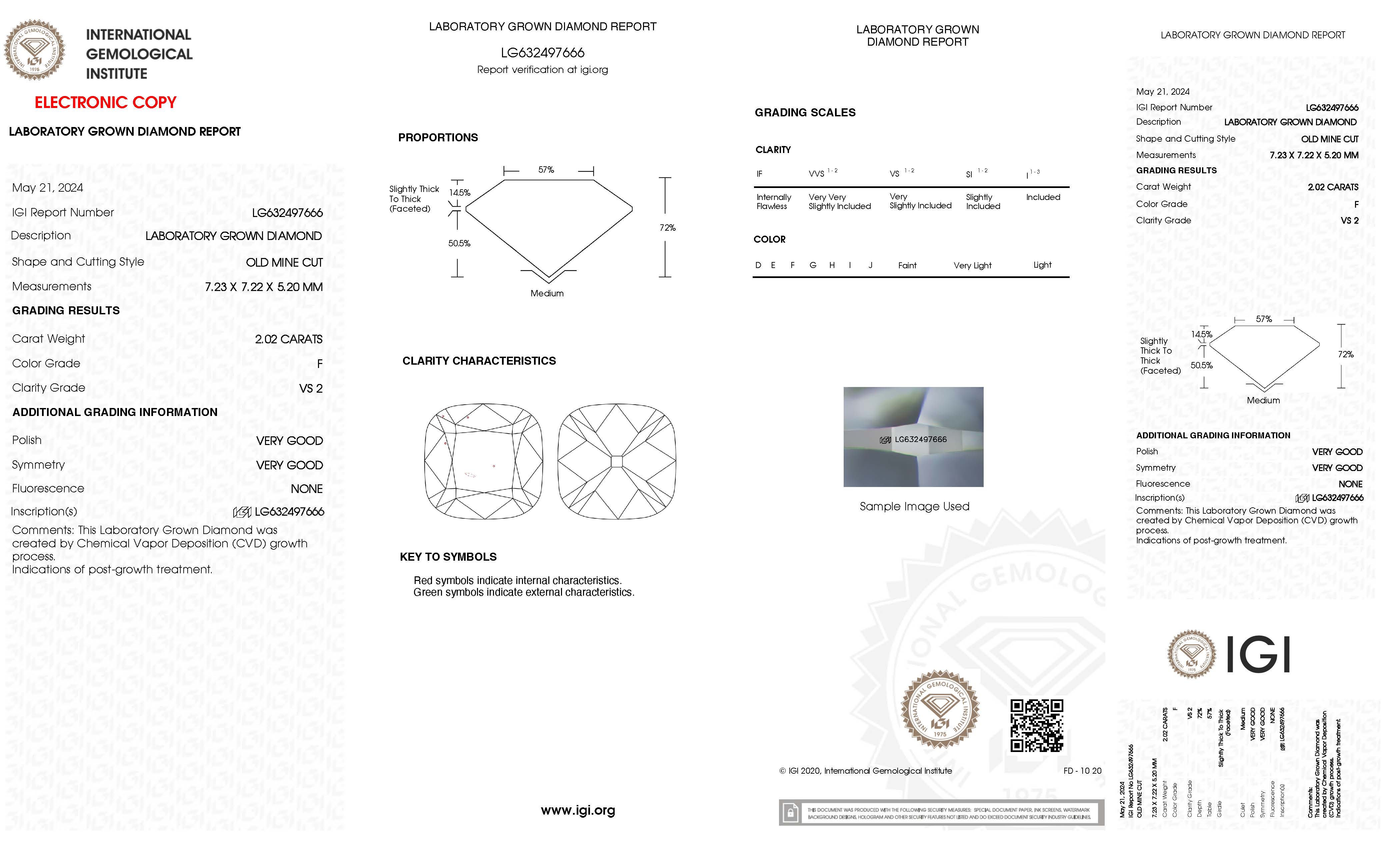 • 2.02ct / 7.23x7.22x5.20mm old mine cut lab diamond (F/VS2), ethically sourced and handpicked to ensure beauty and quality