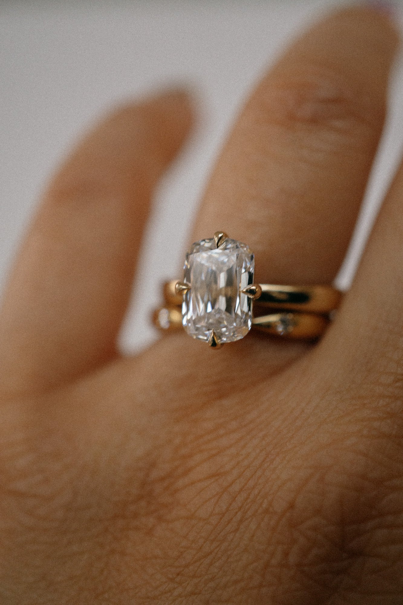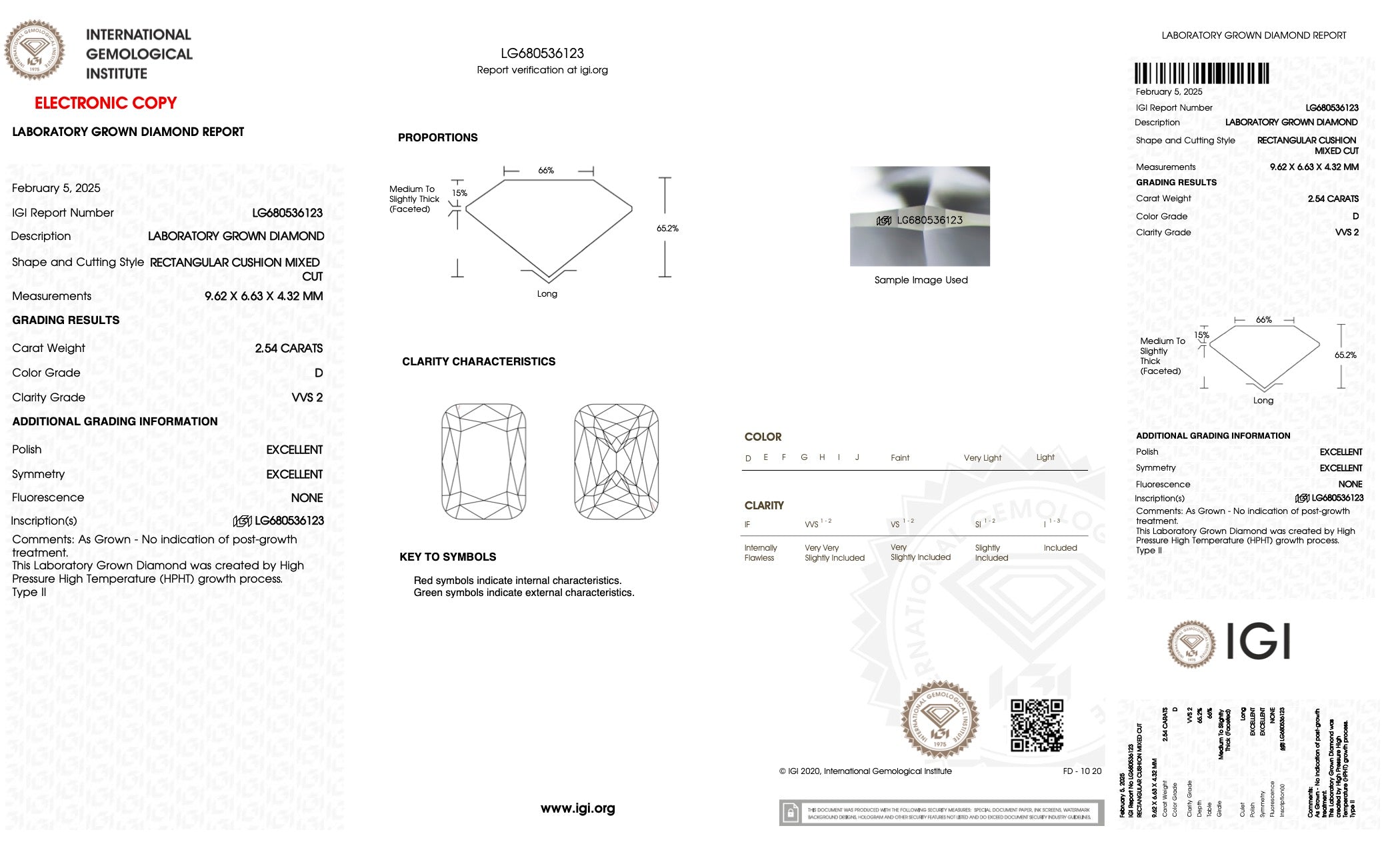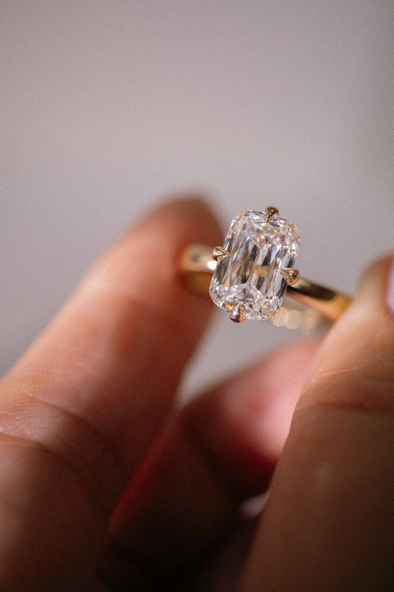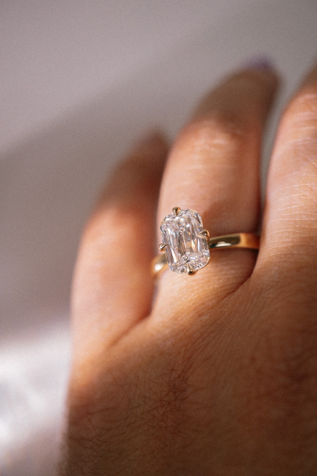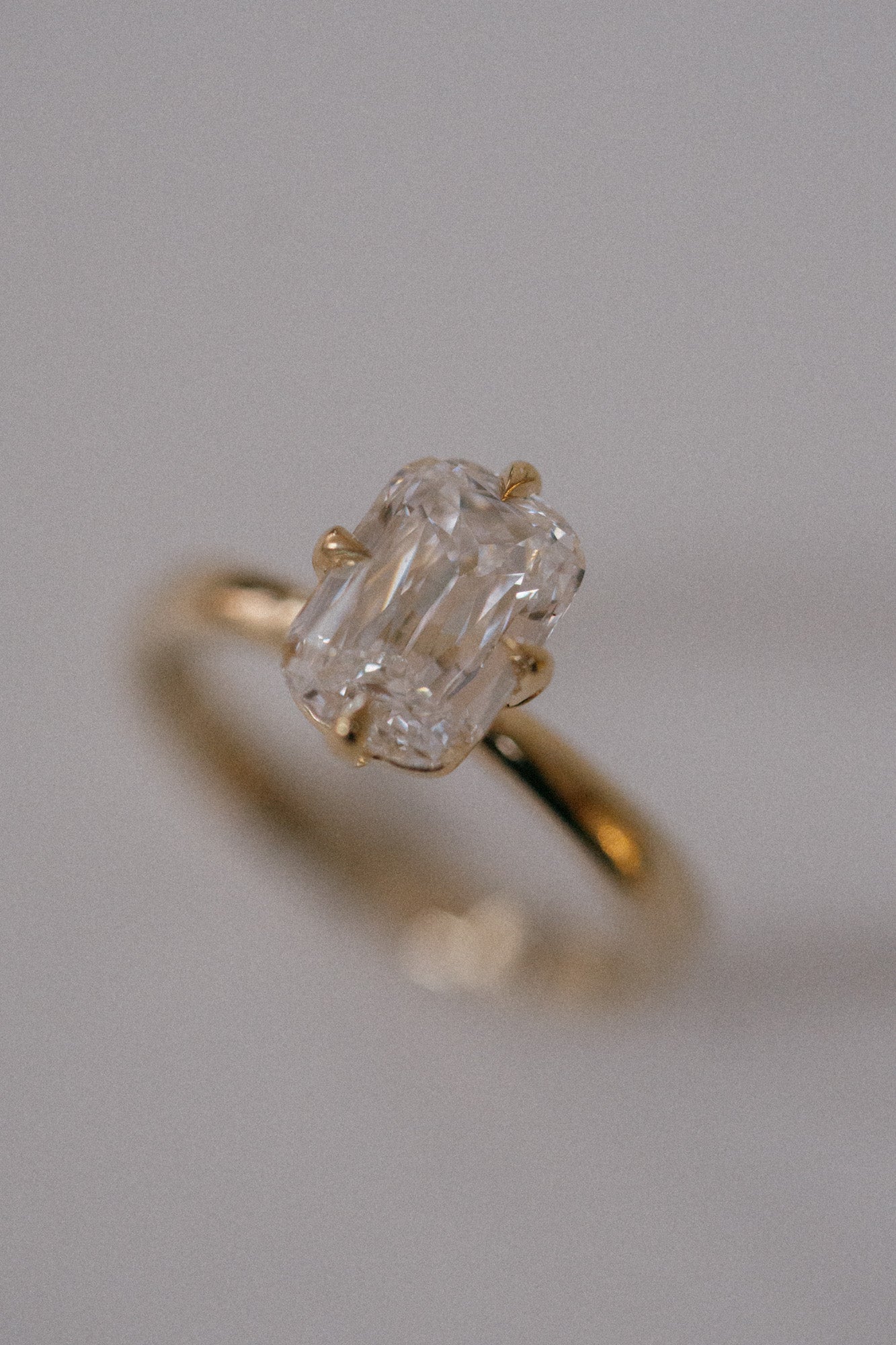 • 2.43ct / 9.62x6.63x4.32mm white emerald-cut lab-grown diamond (D/VVS2), ethically sourced and handpicked to ensure beauty and quality