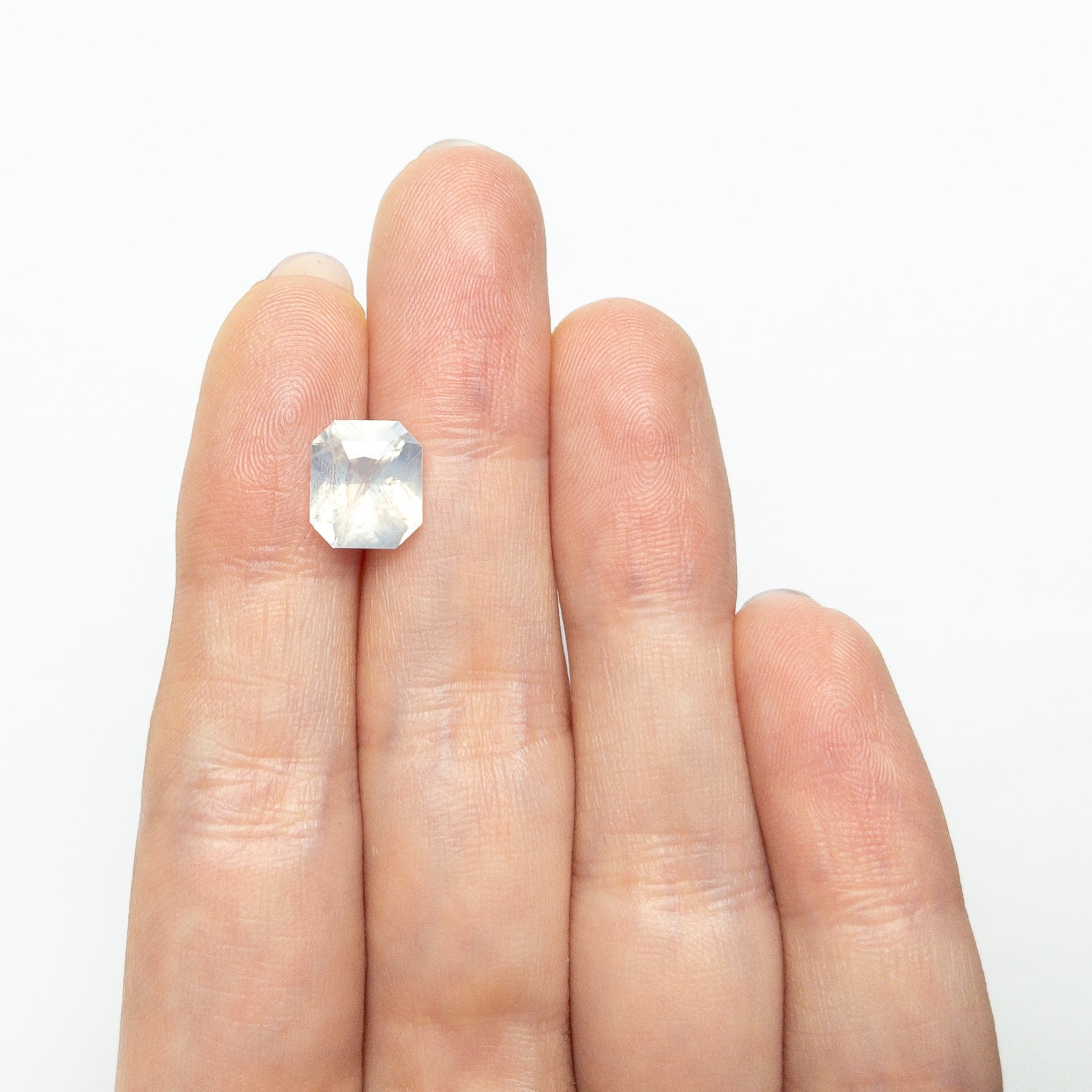 • 4.08ct / 9.26x8.22x5.71mm (ethically sourced opalescent white brilliant cut, cut-corner rectangle sapphire)