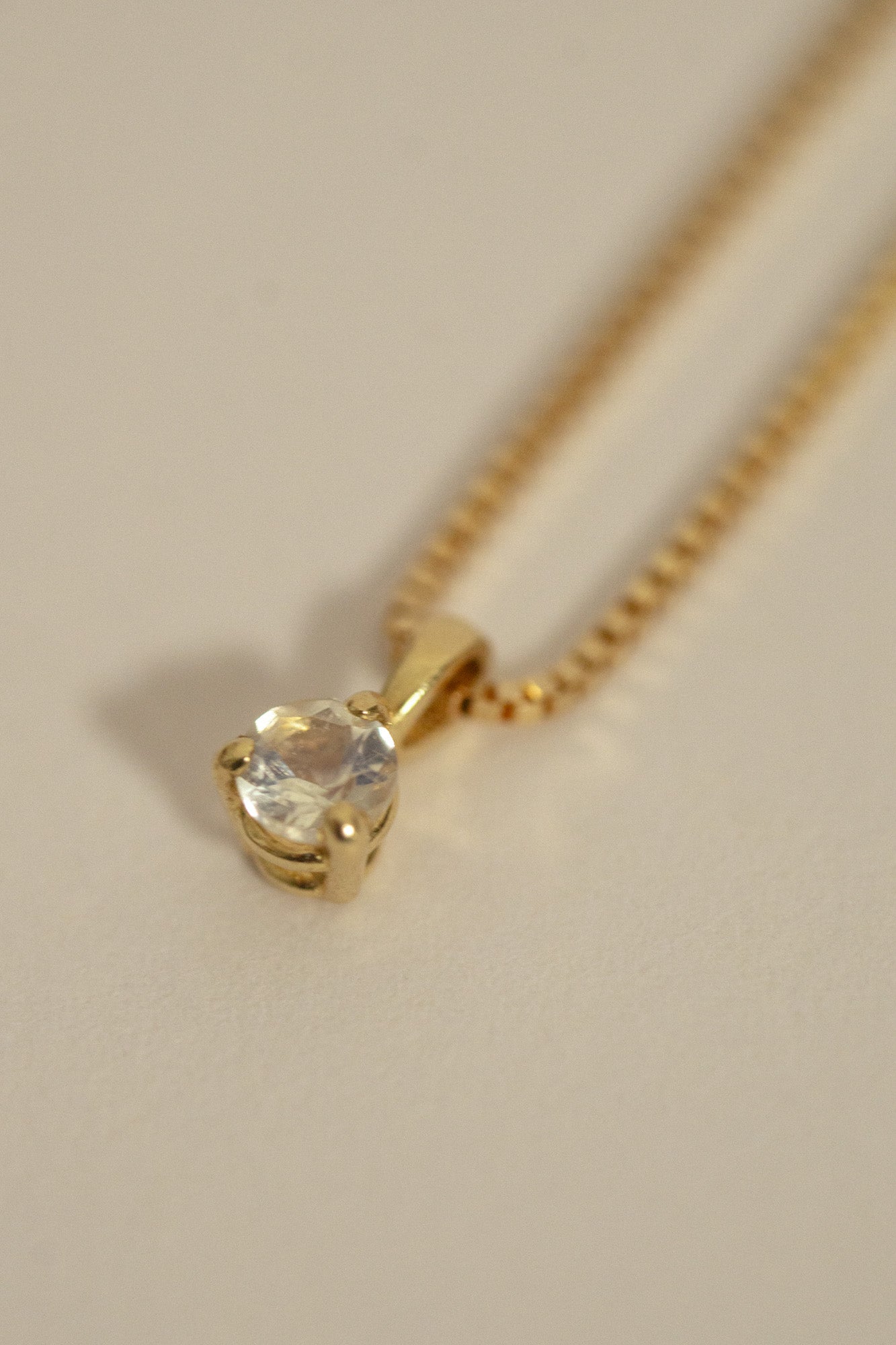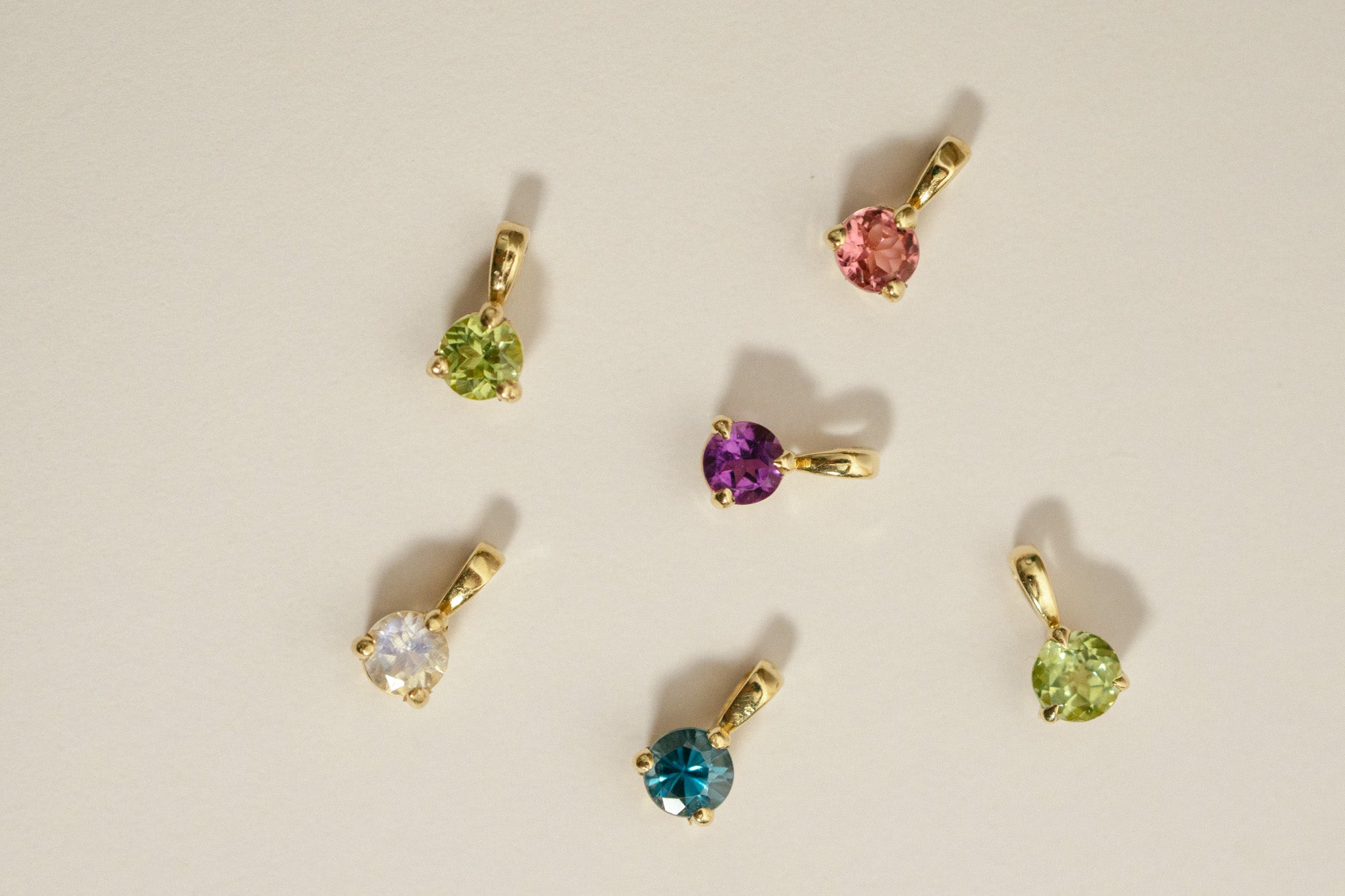 • .10ct / 3mm brilliant-cut conflict-free natural-grown gemstone (AA-AAA quality), unless otherwise specified, set in a 14k gold 3-prong pendant
